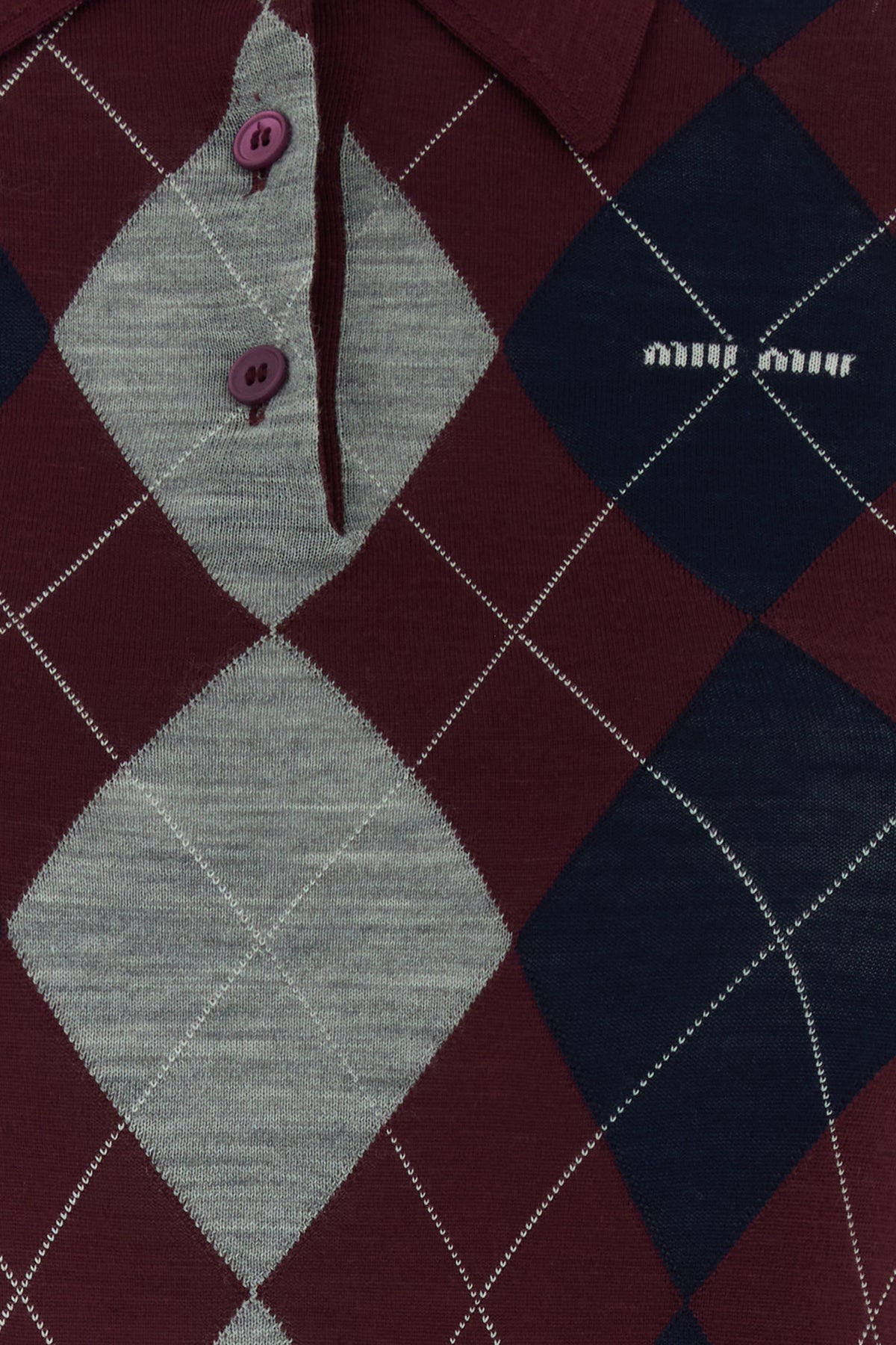 Polo realizzata in pura lana vergine caratterizzata da ricamo a quadri su tutta la superficie e logo ricamato sul petto.