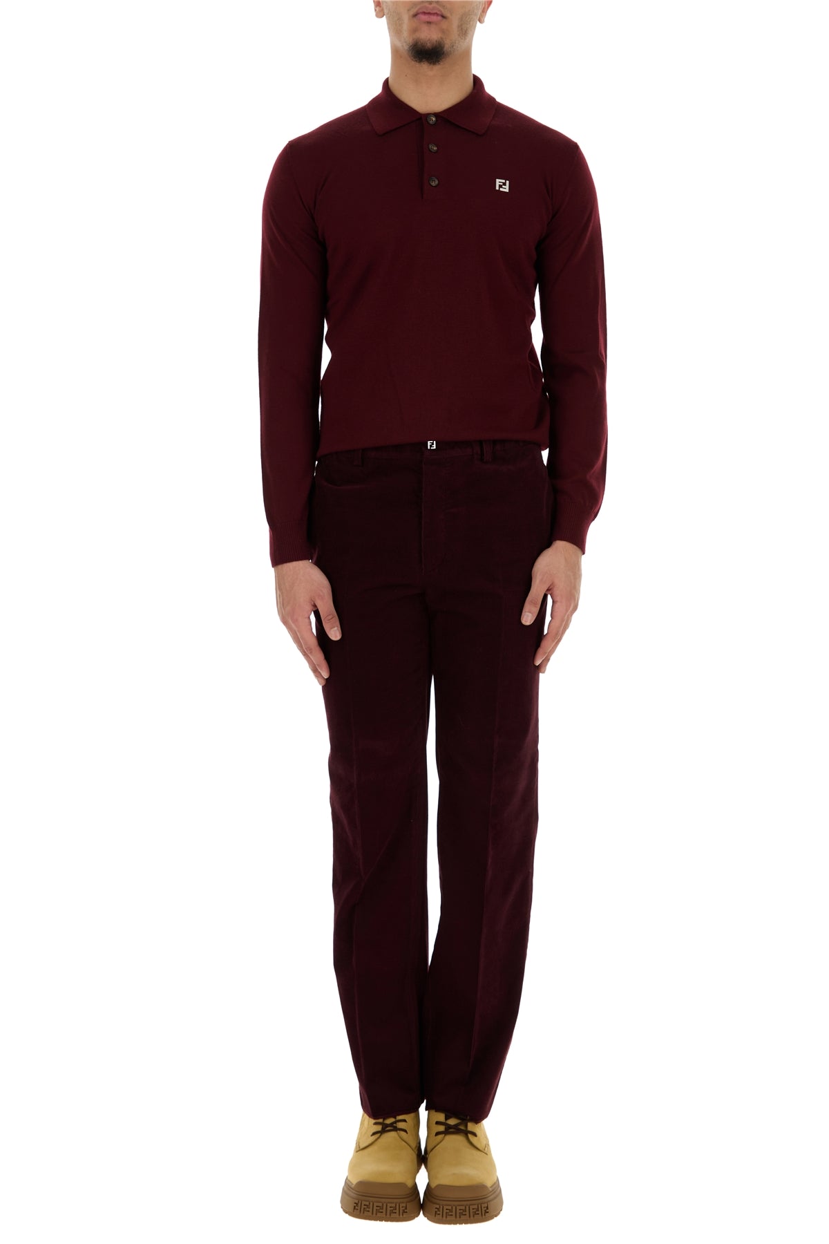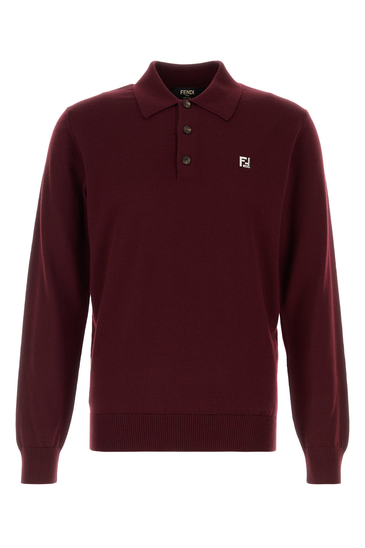 Polo a maniche lunghe realizzata in lana vergine stretch arricchita da dettaglio metallico FF sul petto.