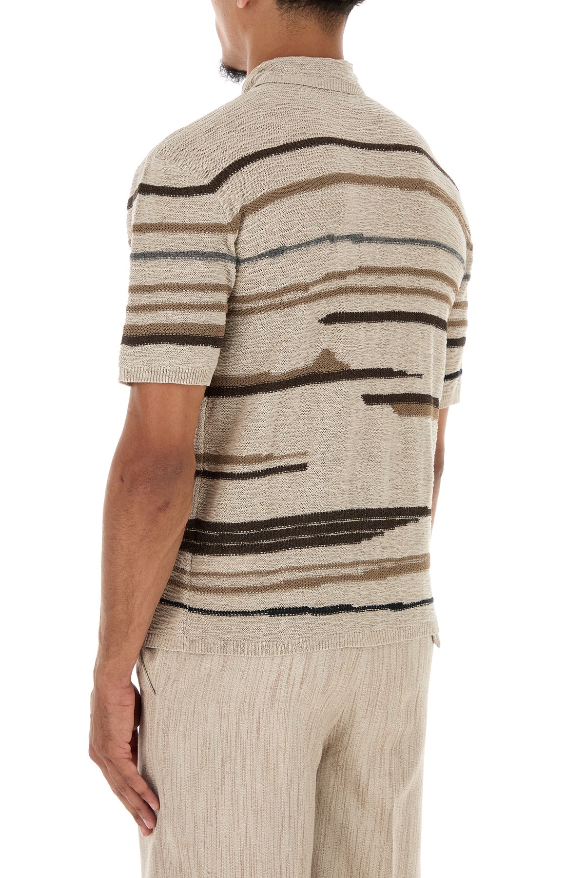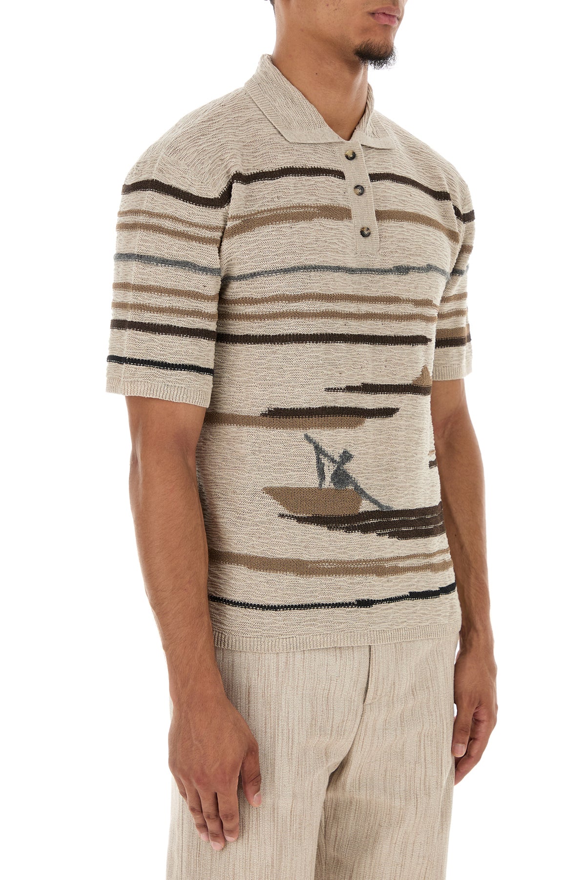 Polo realizzata in misto cotone caratterizzata da particolare ricamo su tutta la superficie.