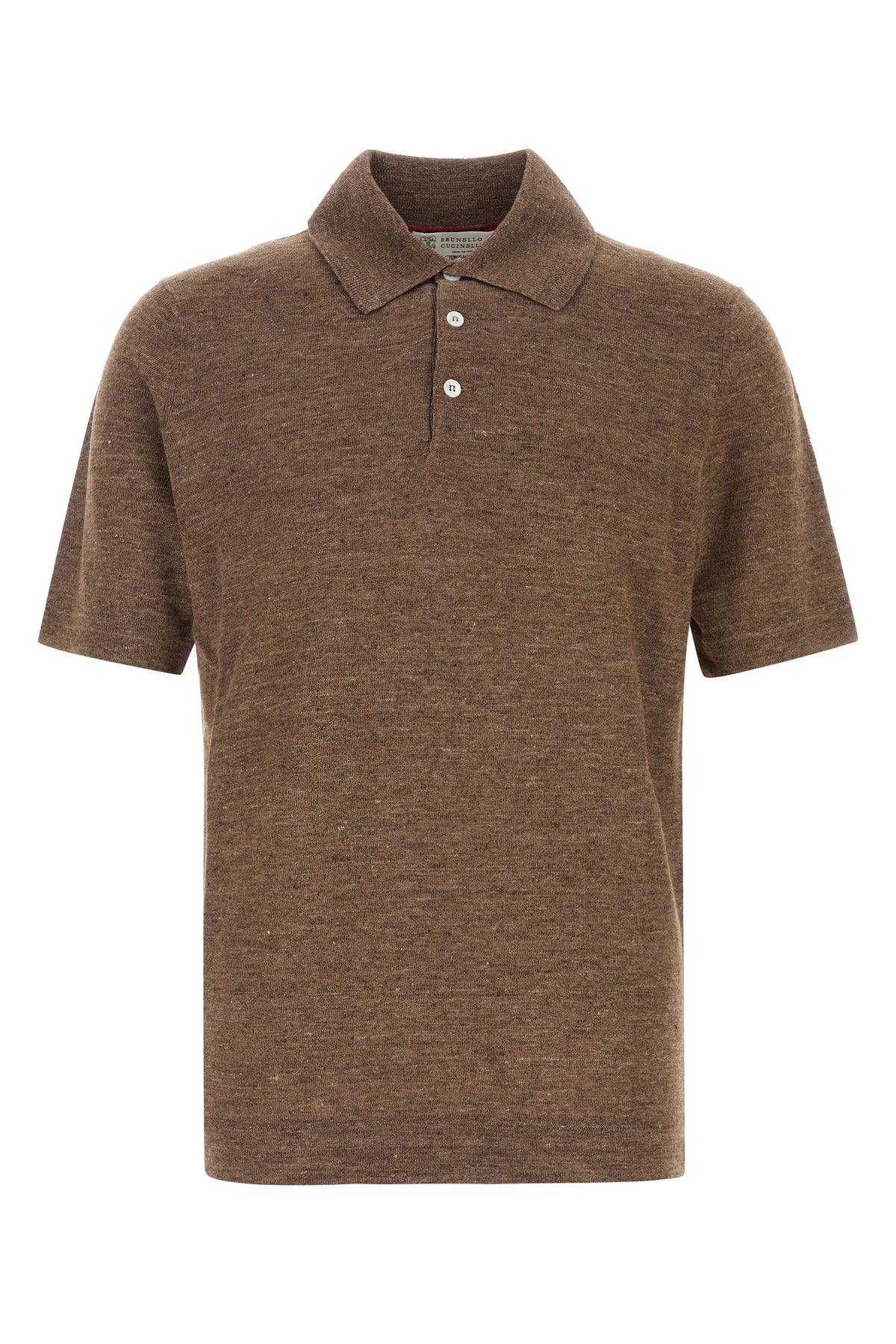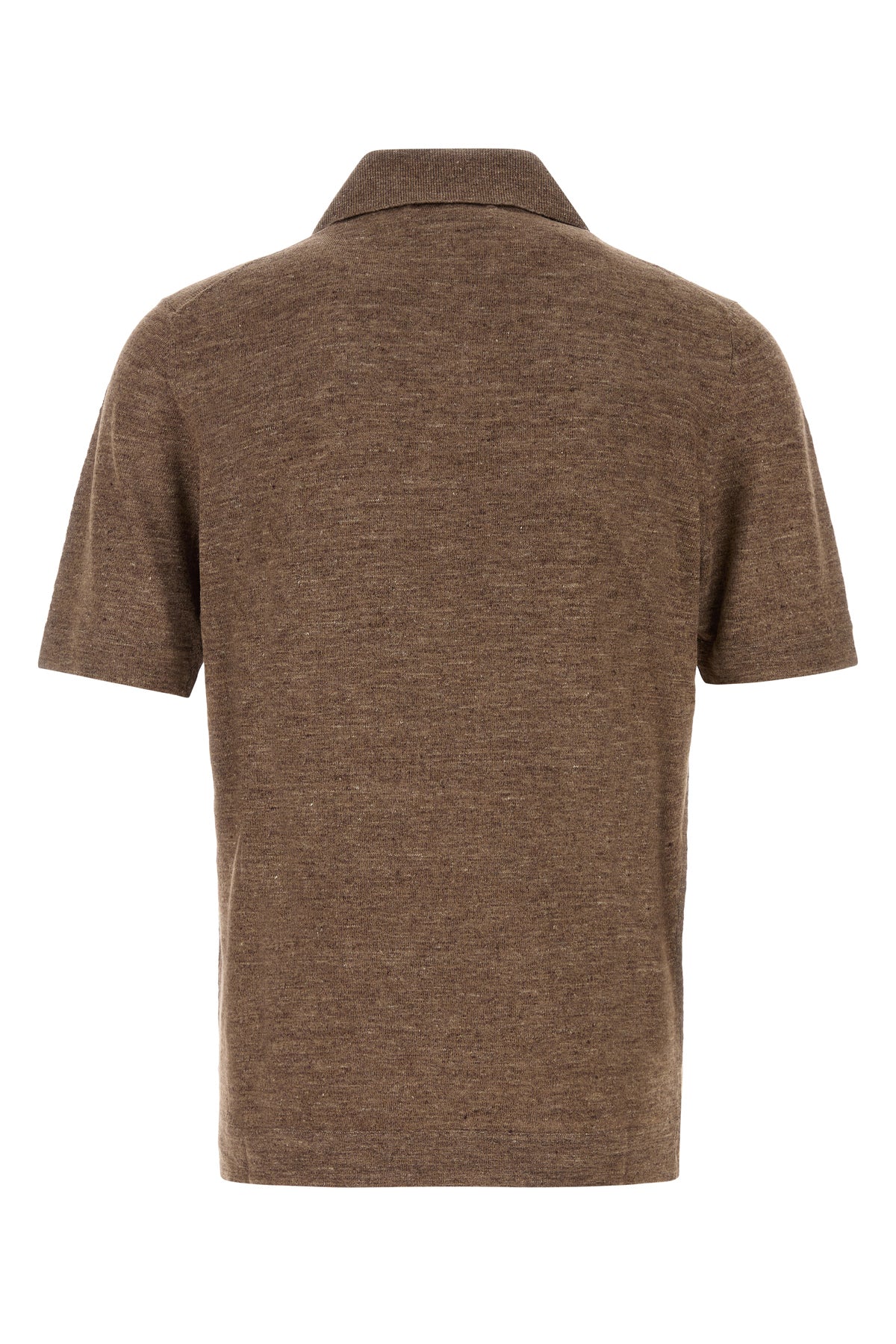 Polo in misto lino marrone melangé