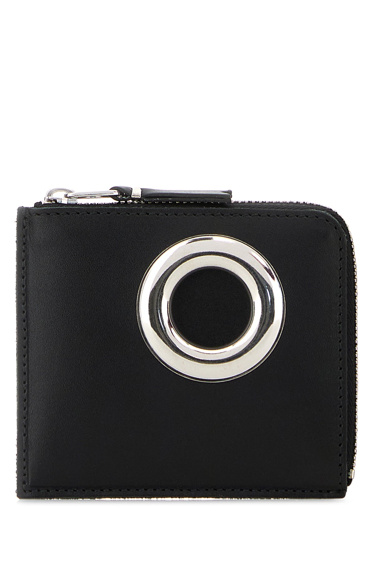 Portacarte realizzato in pelle arricchito da particolare dettaglio metallico sulla parte frontale.
