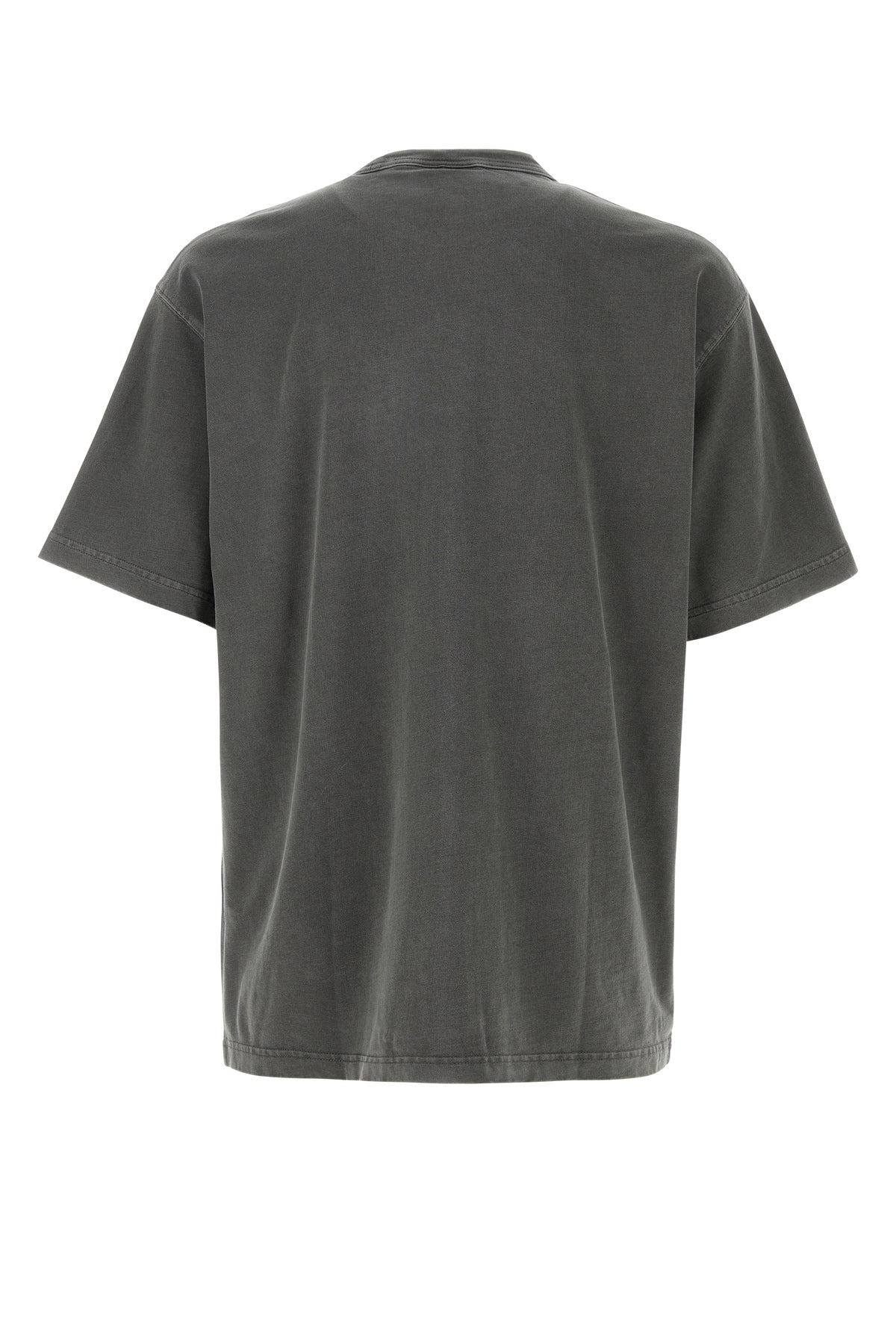 T-shirt realizzata in puro cotone biologico ad effetto leggermente sdrucito arricchito da etichetta logata sul fondo.