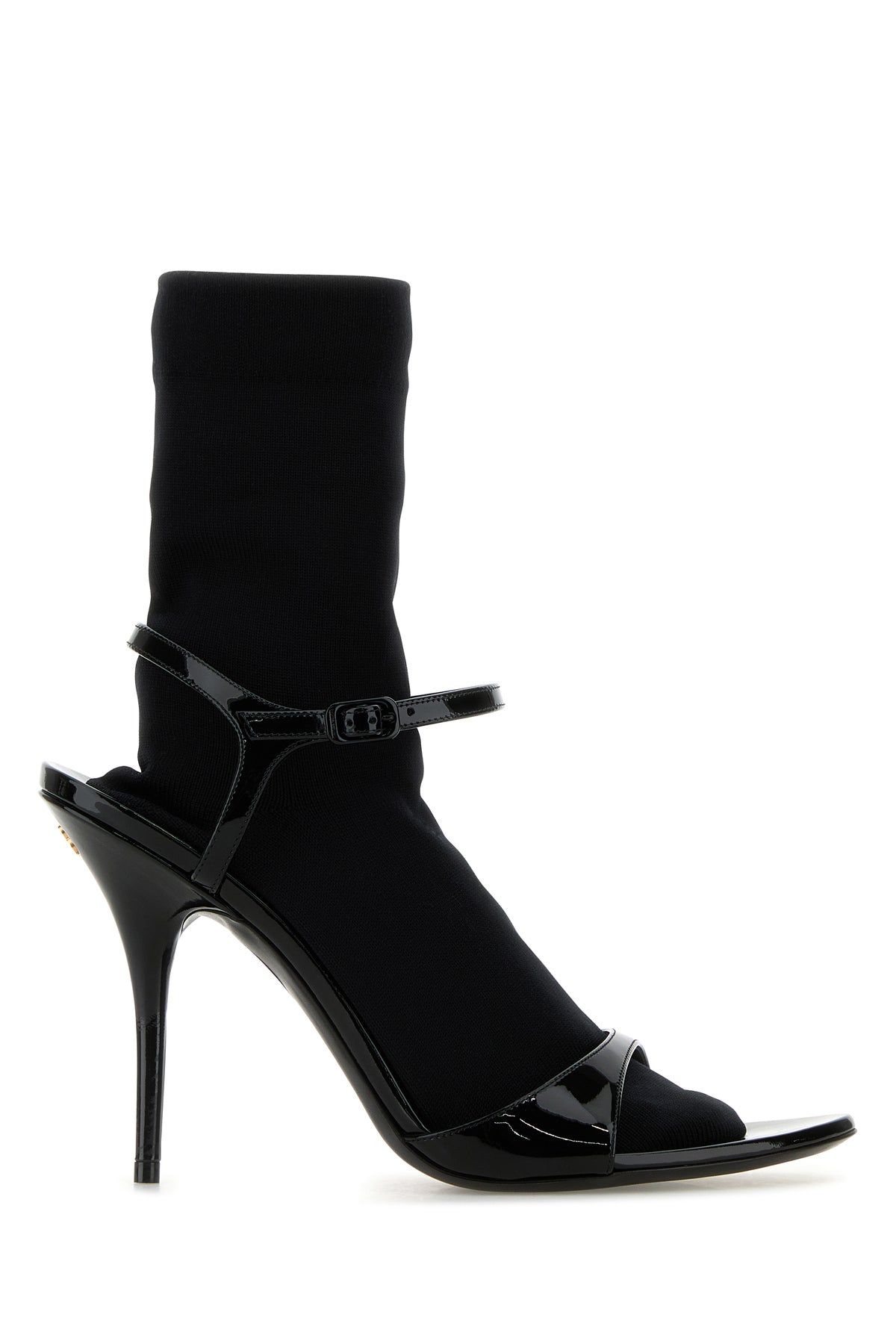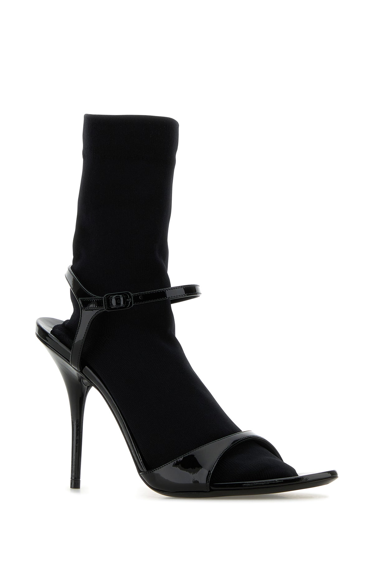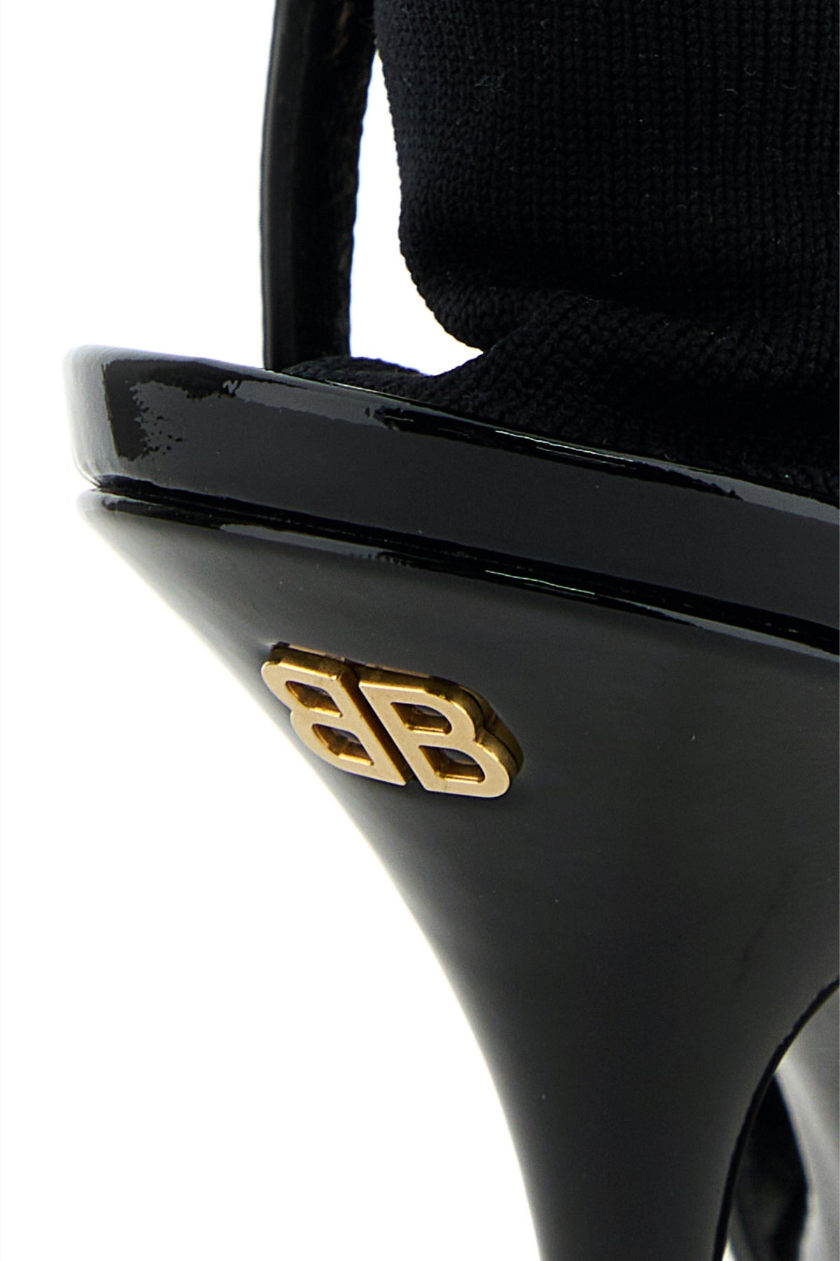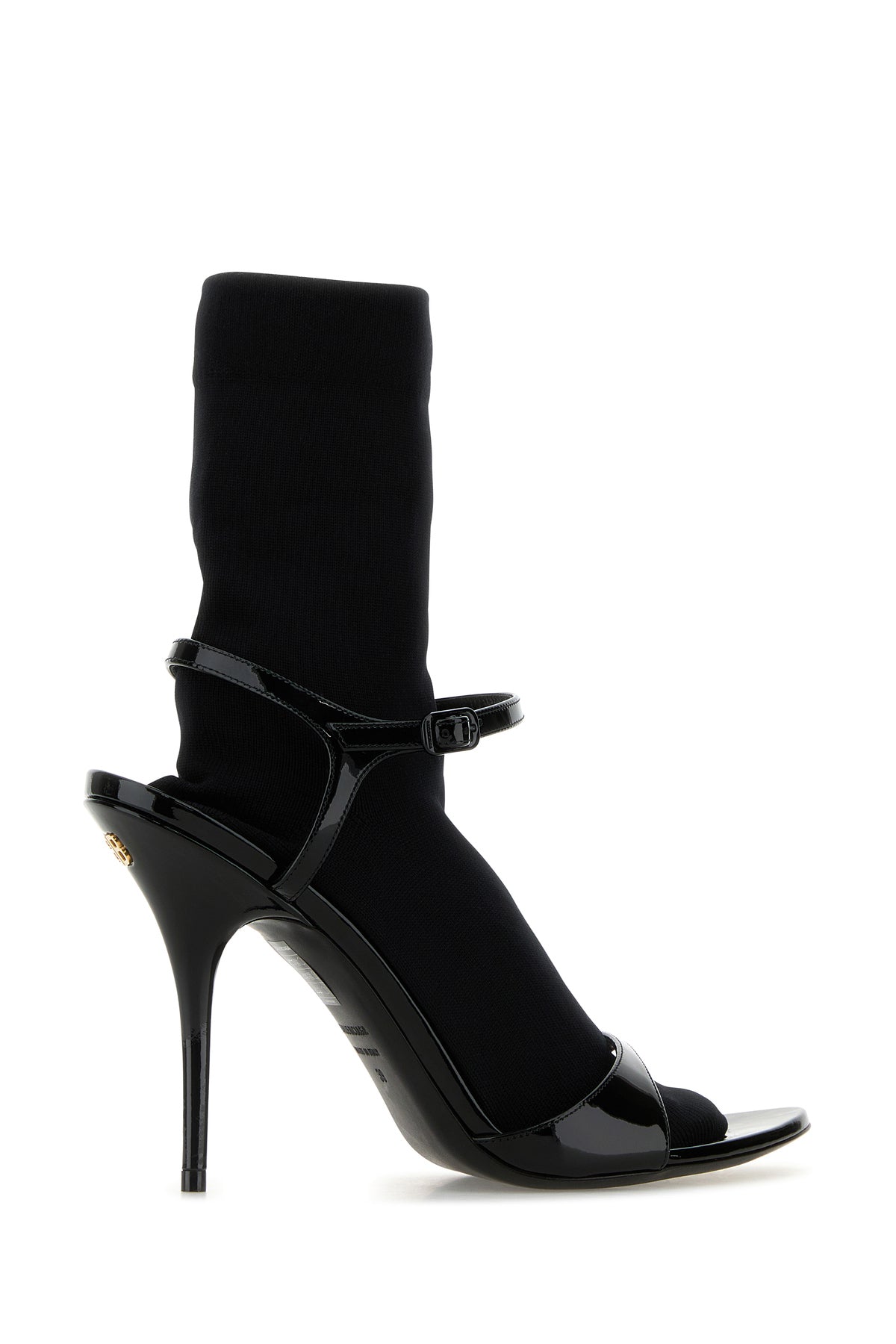 Sandali realizzati in pelle di vitello verniciata con calza incorporata arricchiti da dettaglio metallico BB sul retro.