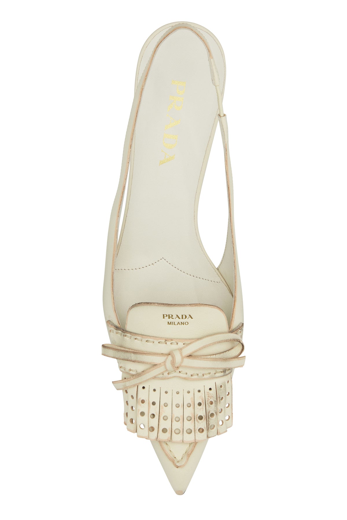 Slingback realizzate in pelle di vitello ad effetto vintage caratterizzate da logo stampato laminato sul collo del piede.