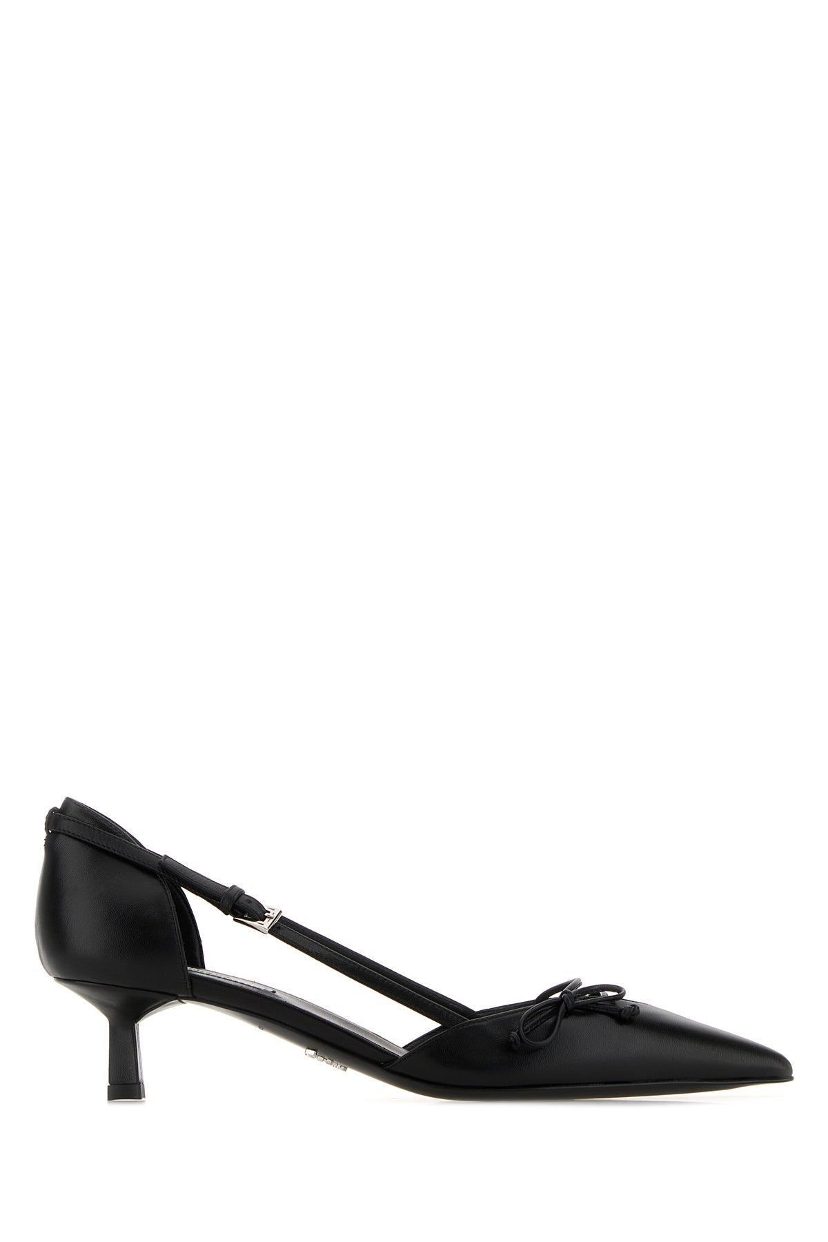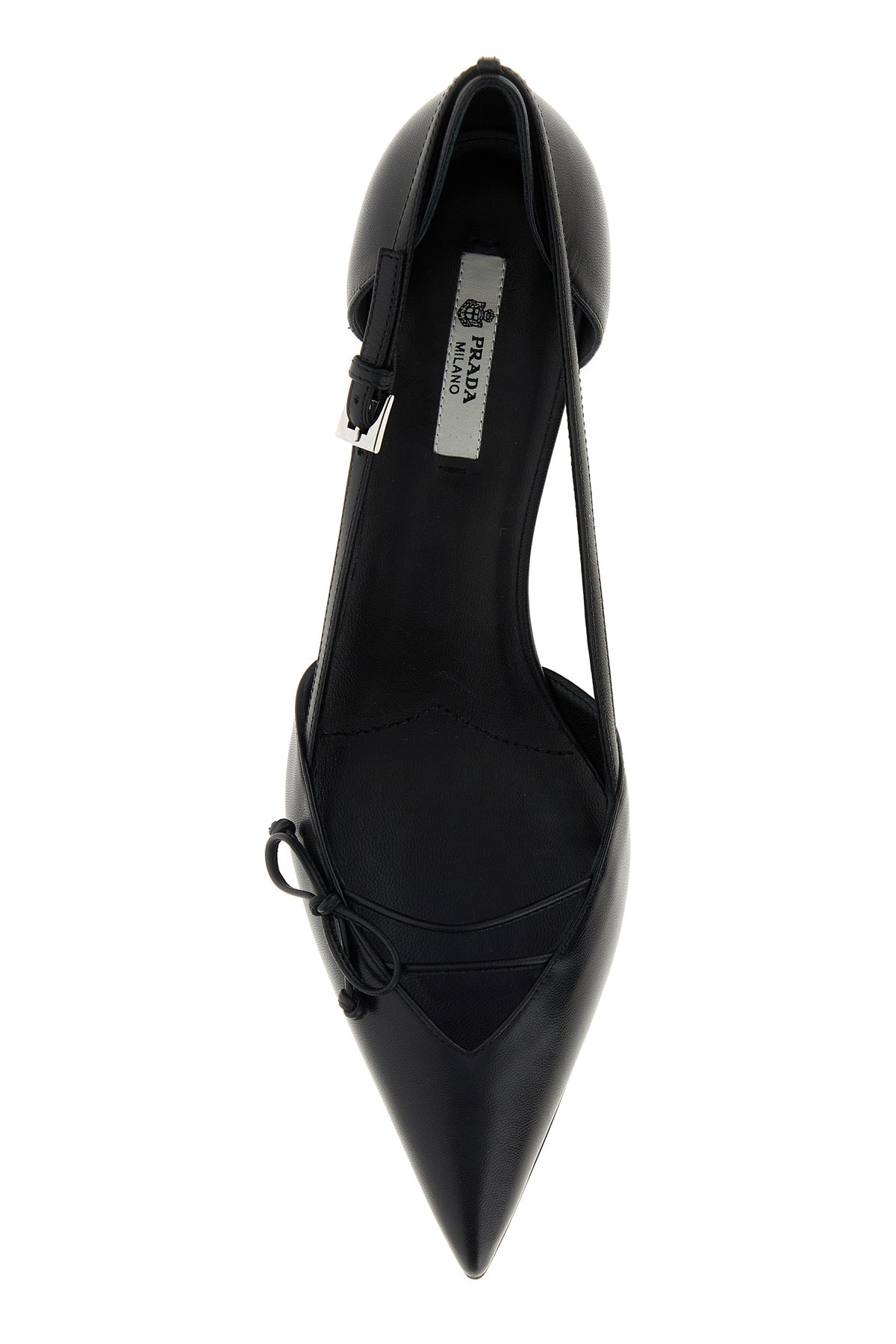 Scarpe con tacco realizzate in pelle arricchite da fiocco decorativo sul lato.