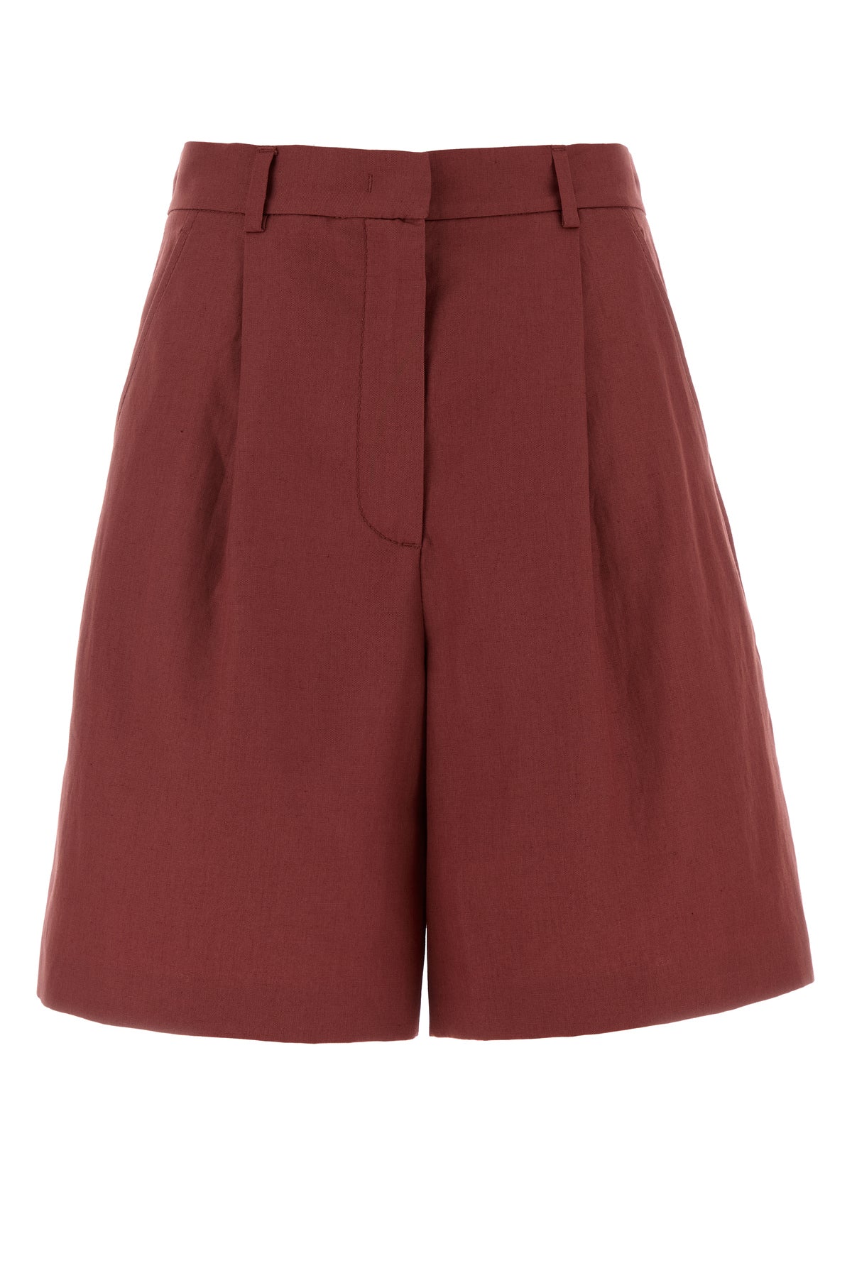 Shorts realizzati in cotone e lino caratterizzati da pieghe invertite sulla parte frontale.