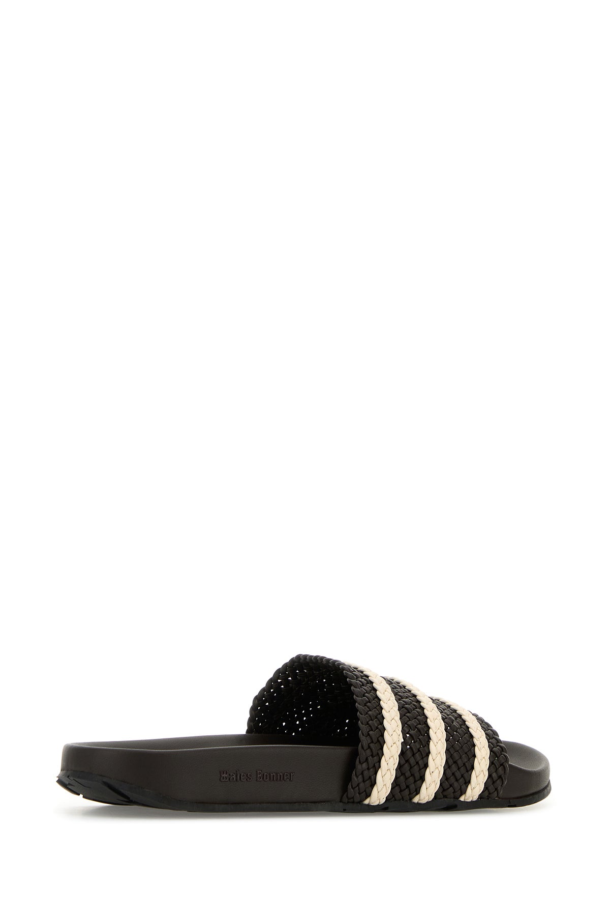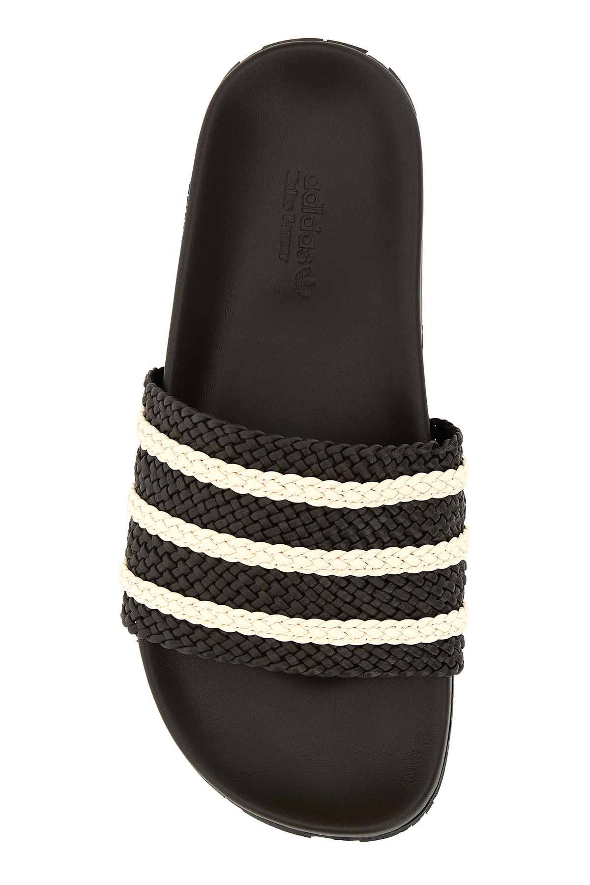 Slippers create in collaborazione con Adidas realizzate in pelle intrecciata arricchita da applicazione a righe sul collo del piede.