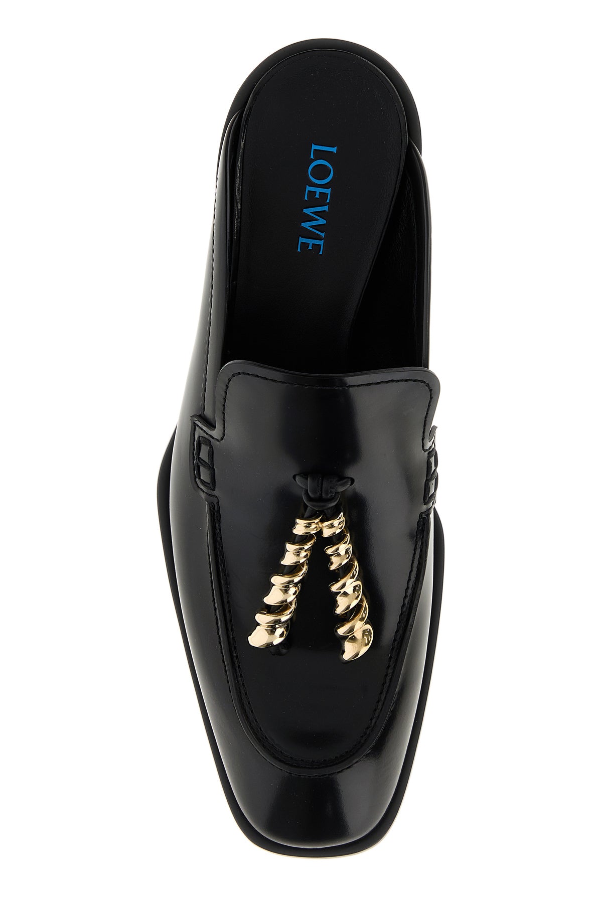 Slippers realizzate in pelle di vitello arricchite da dettaglio metallico logato sul collo del piede.