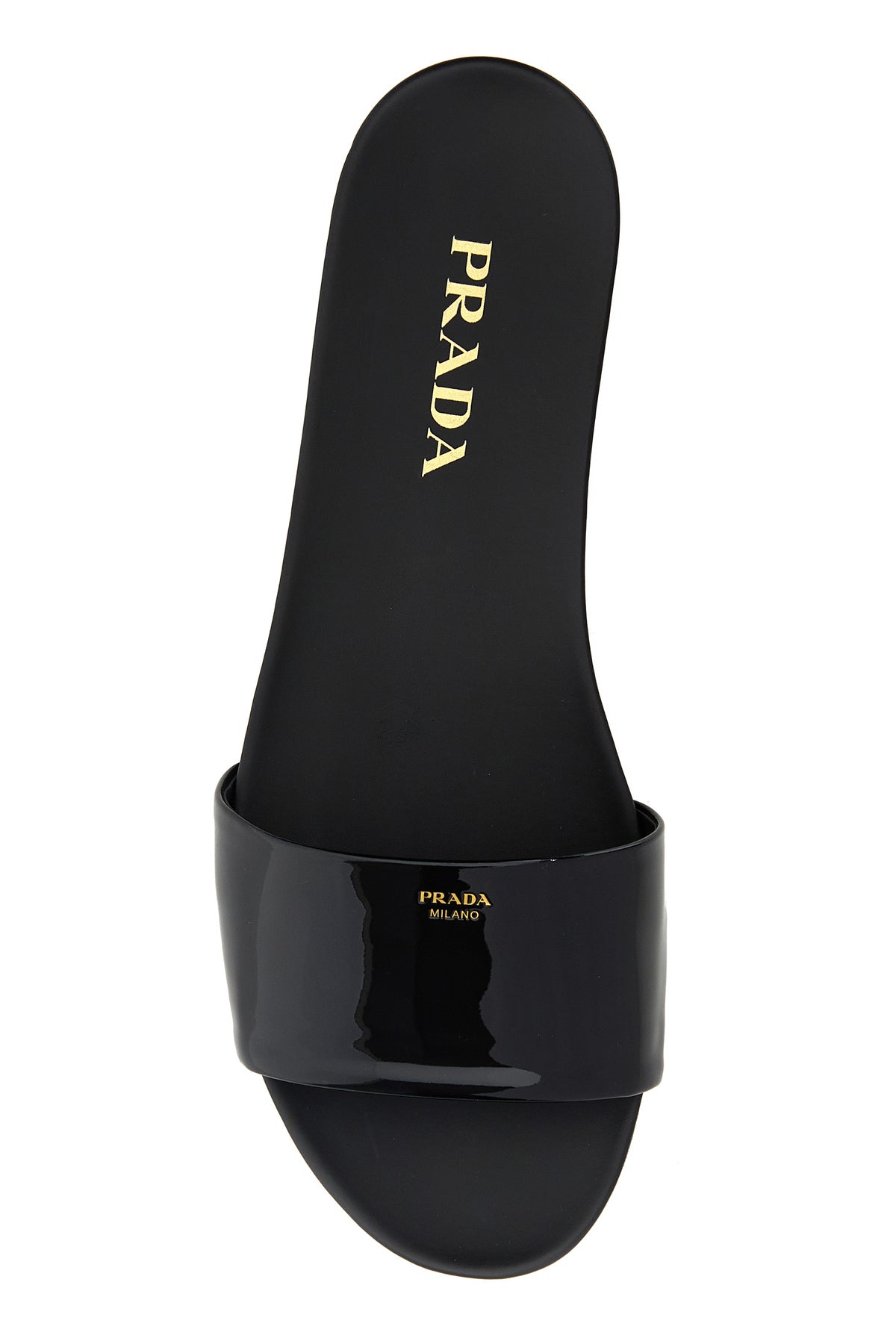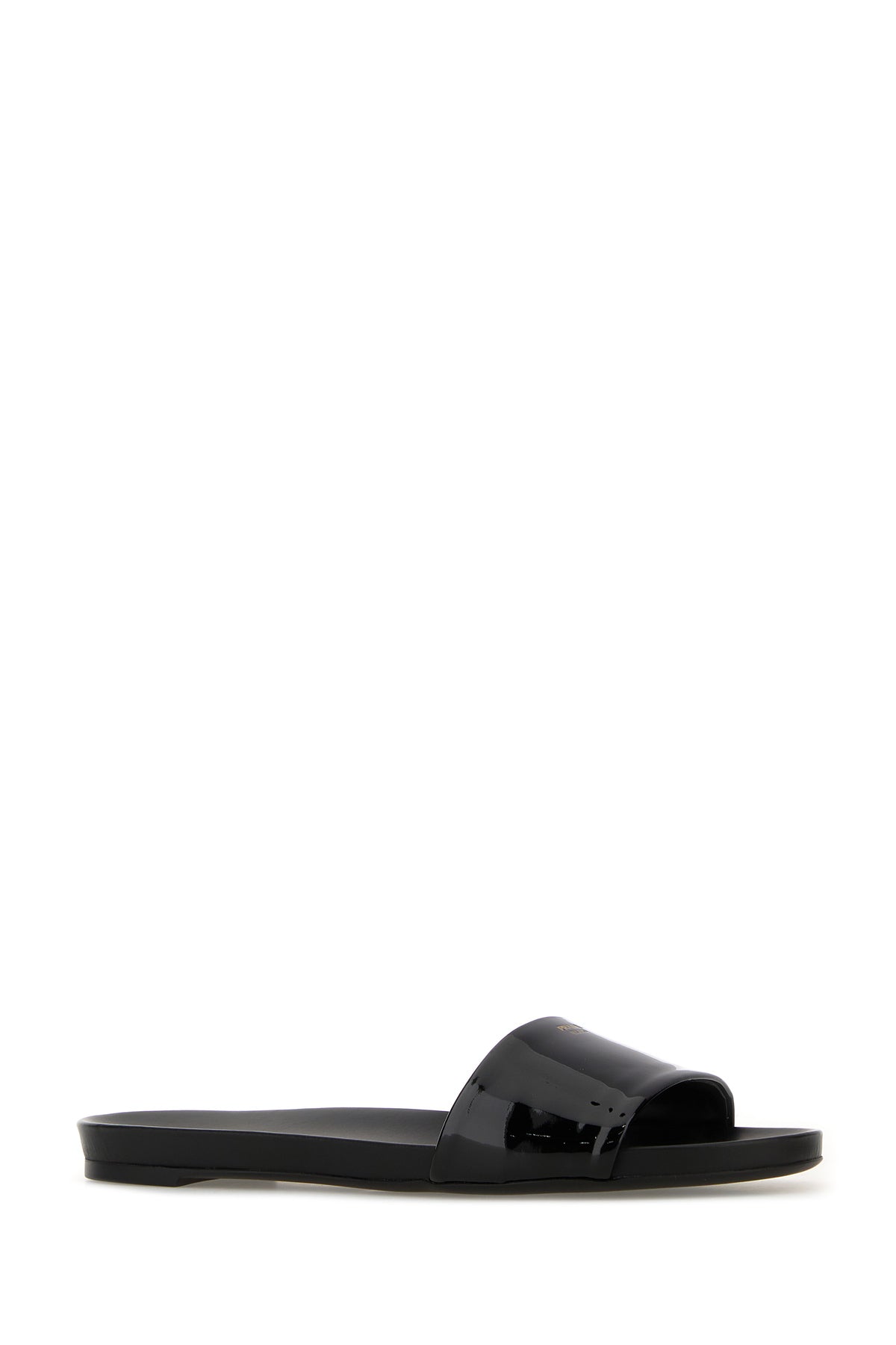 Slippers realizzate in pelle verniciata caratterizzate da logo stampato laminato sul collo del piede.