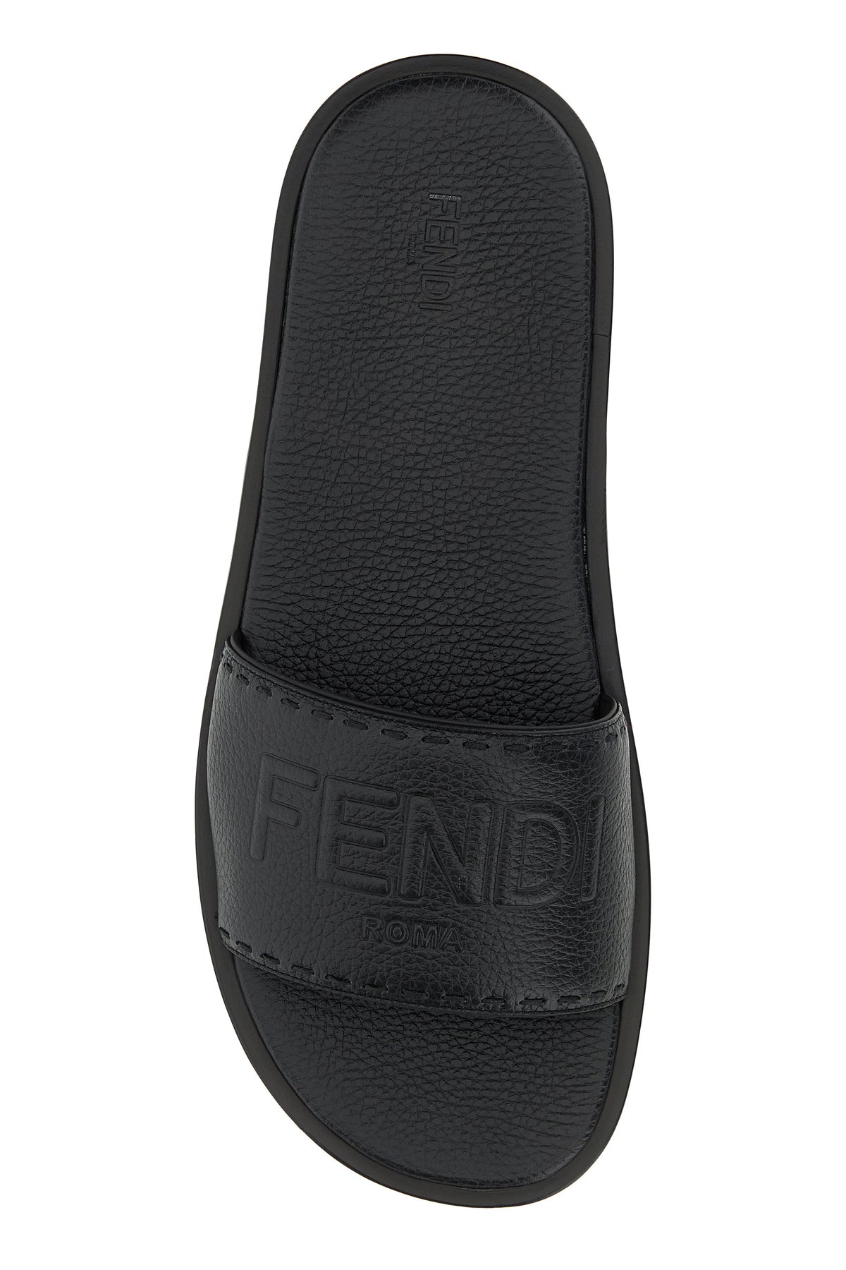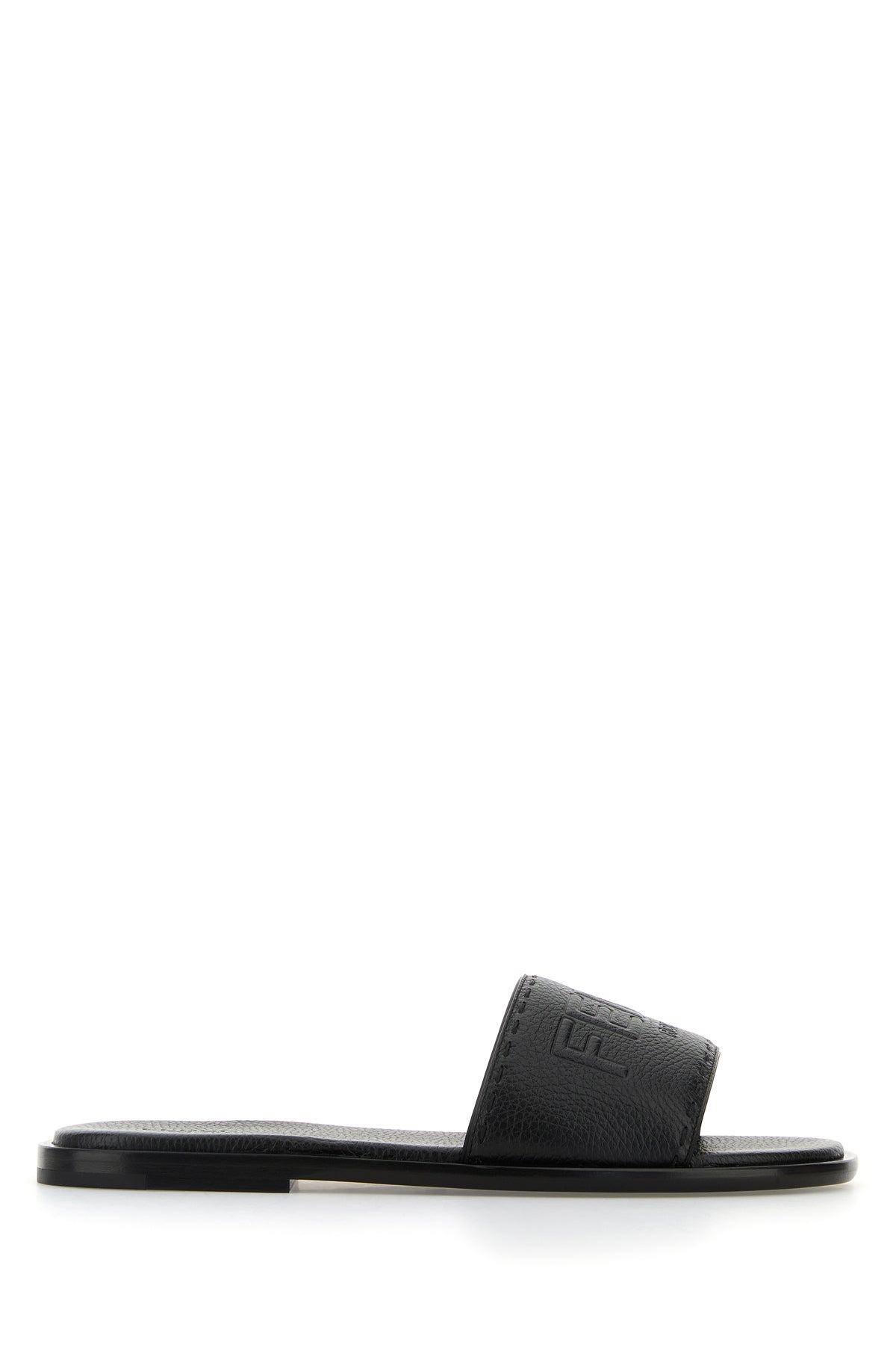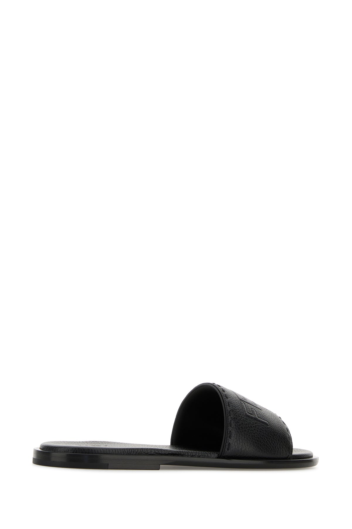 Slippers realizzate in pelle martellata caratterizzate da logo in rilievo sul collo del piede.