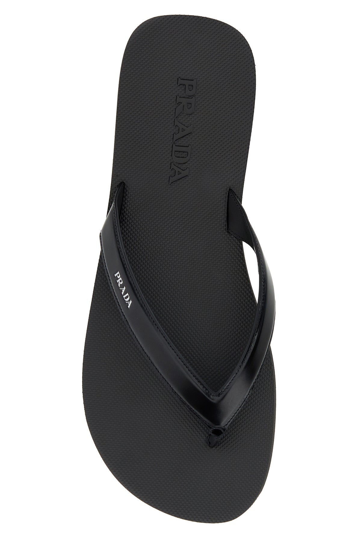 Slippers infradito realizzate in pelle liscia caratterizzate da logo impresso sul lato.