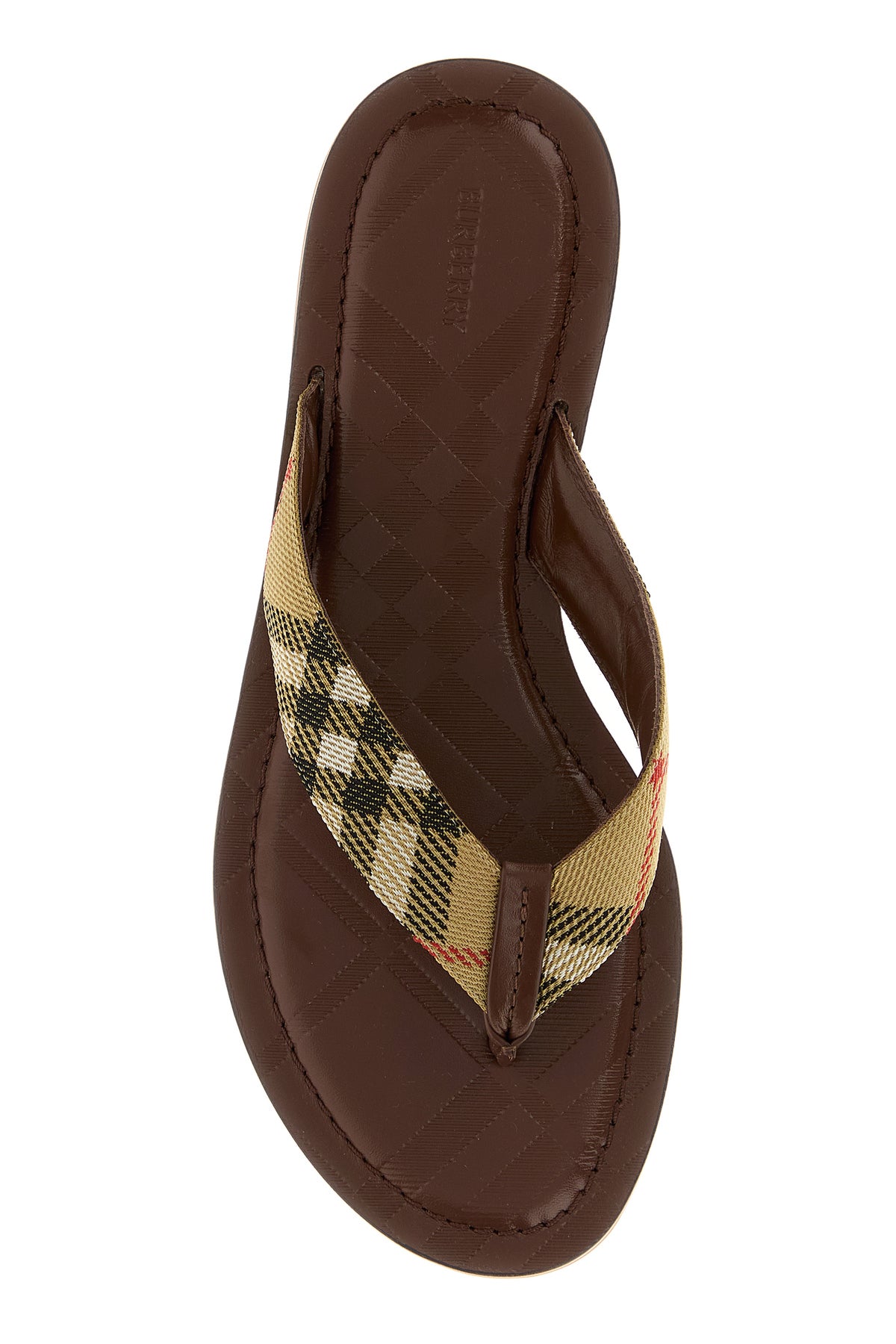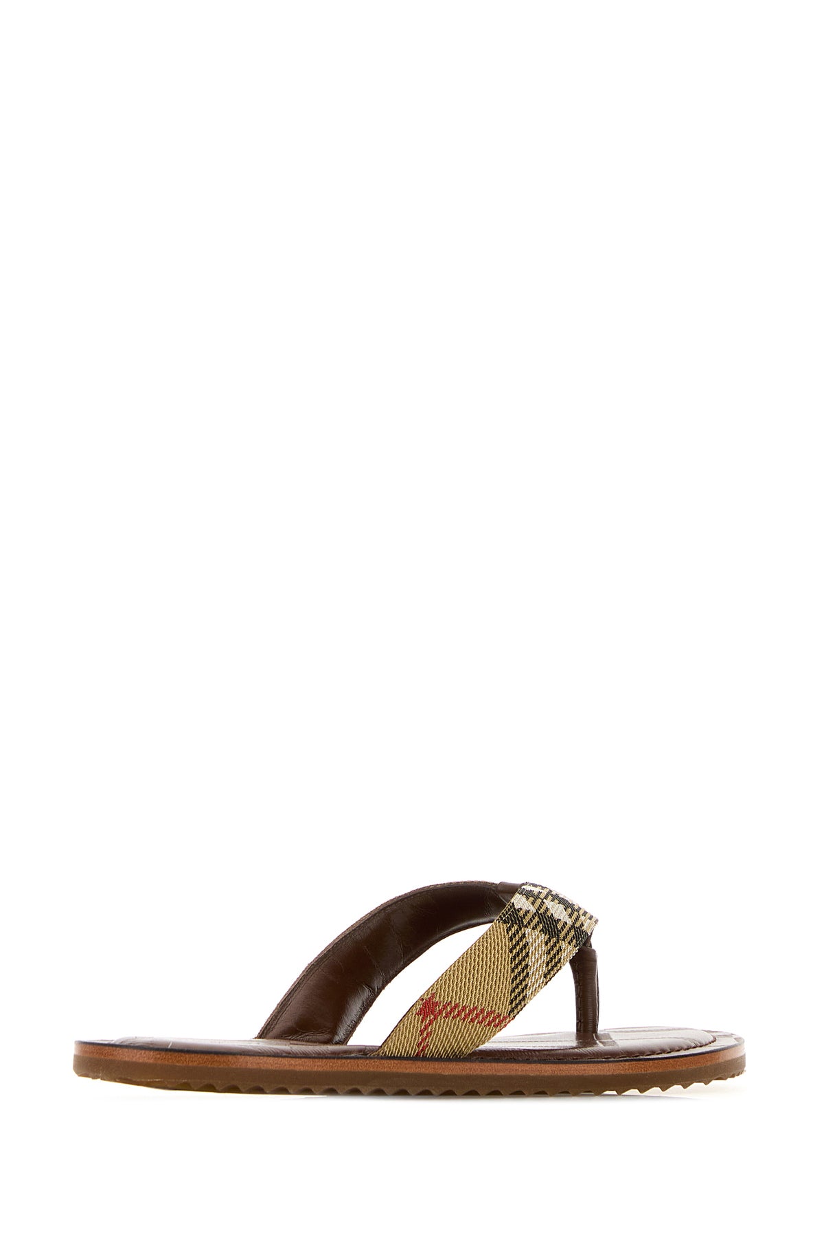 Slippers infradito realizzate in tessuto caratterizzato da ricamo Burberry Check su tutta la superficie.