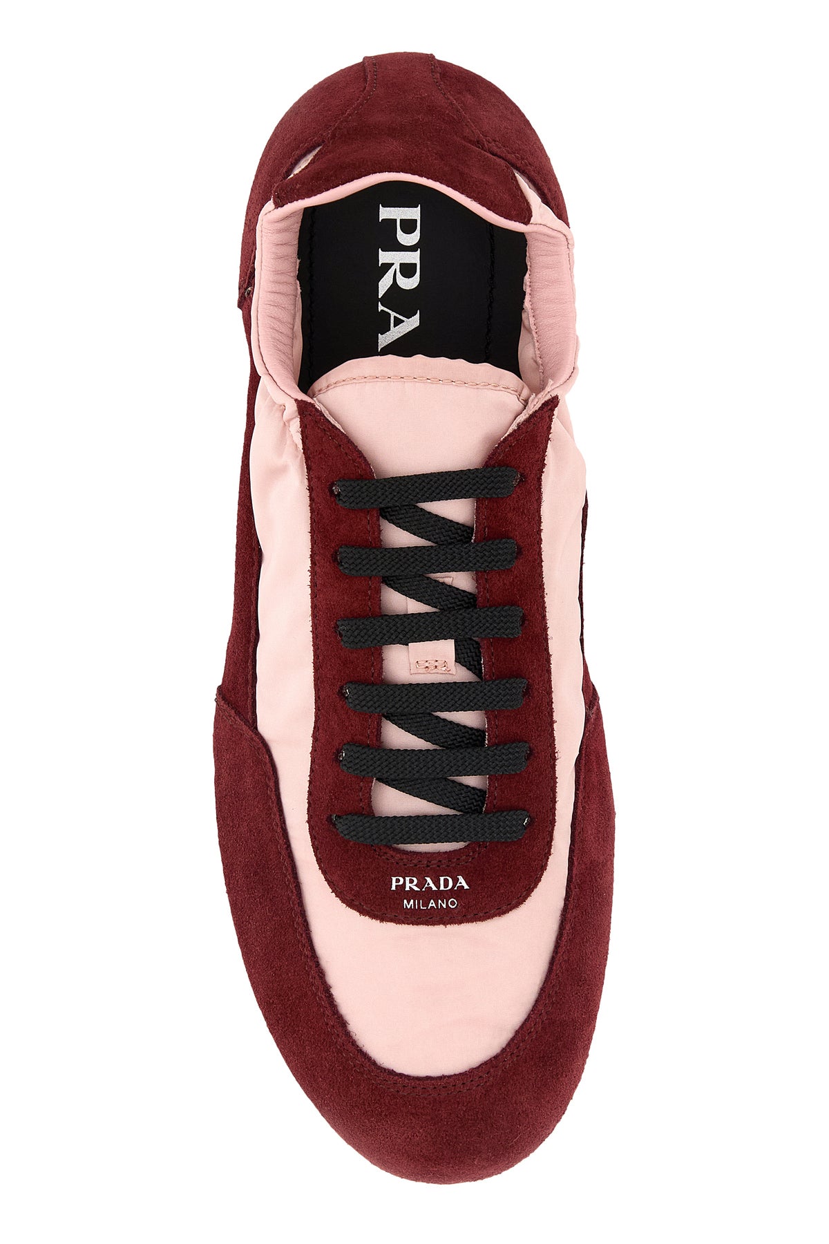 Sneakers realizzate in Re-Nylon e pelle scamosciata caratterizzate da logo stampato laminato sul collo del piede.