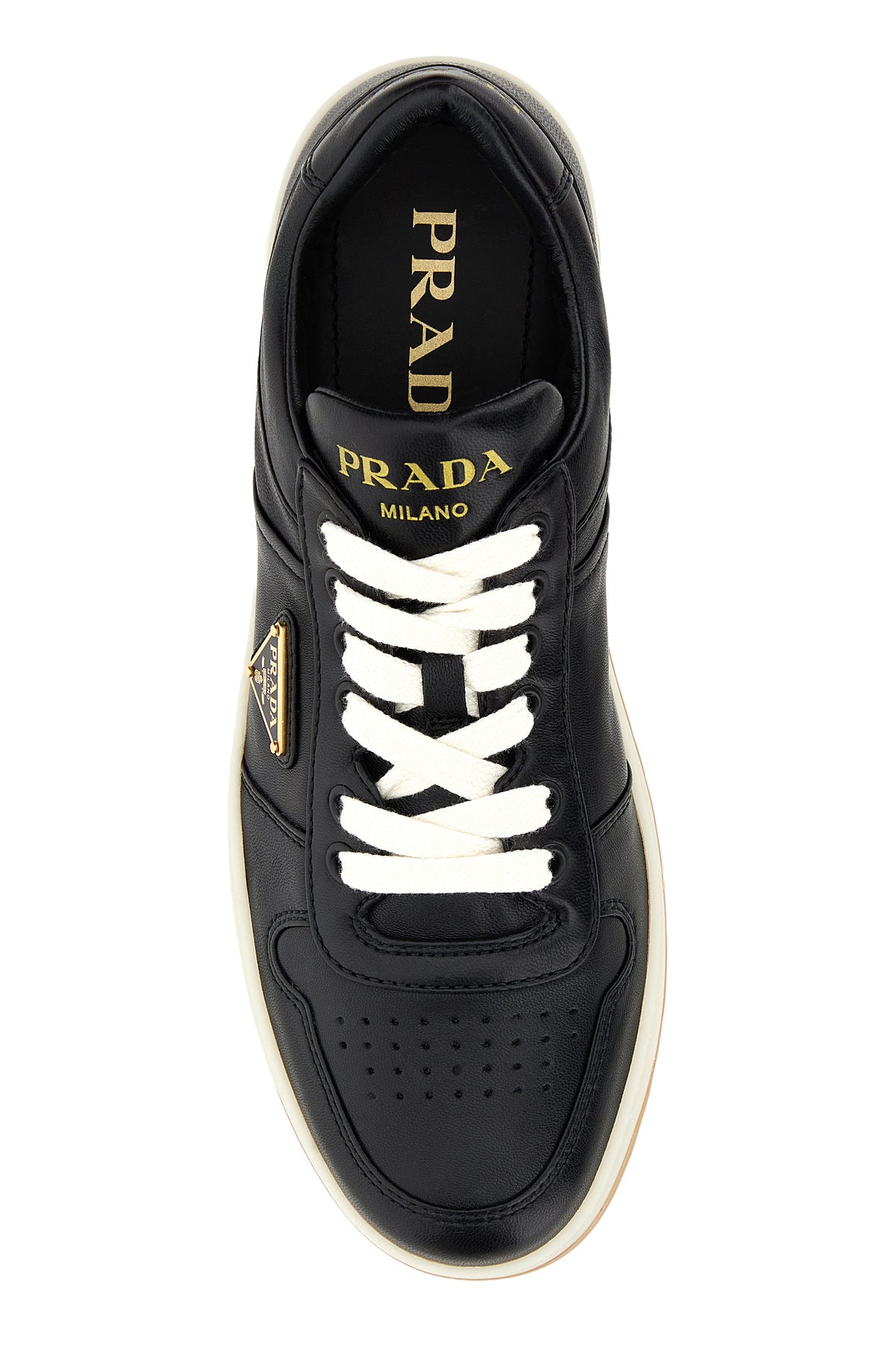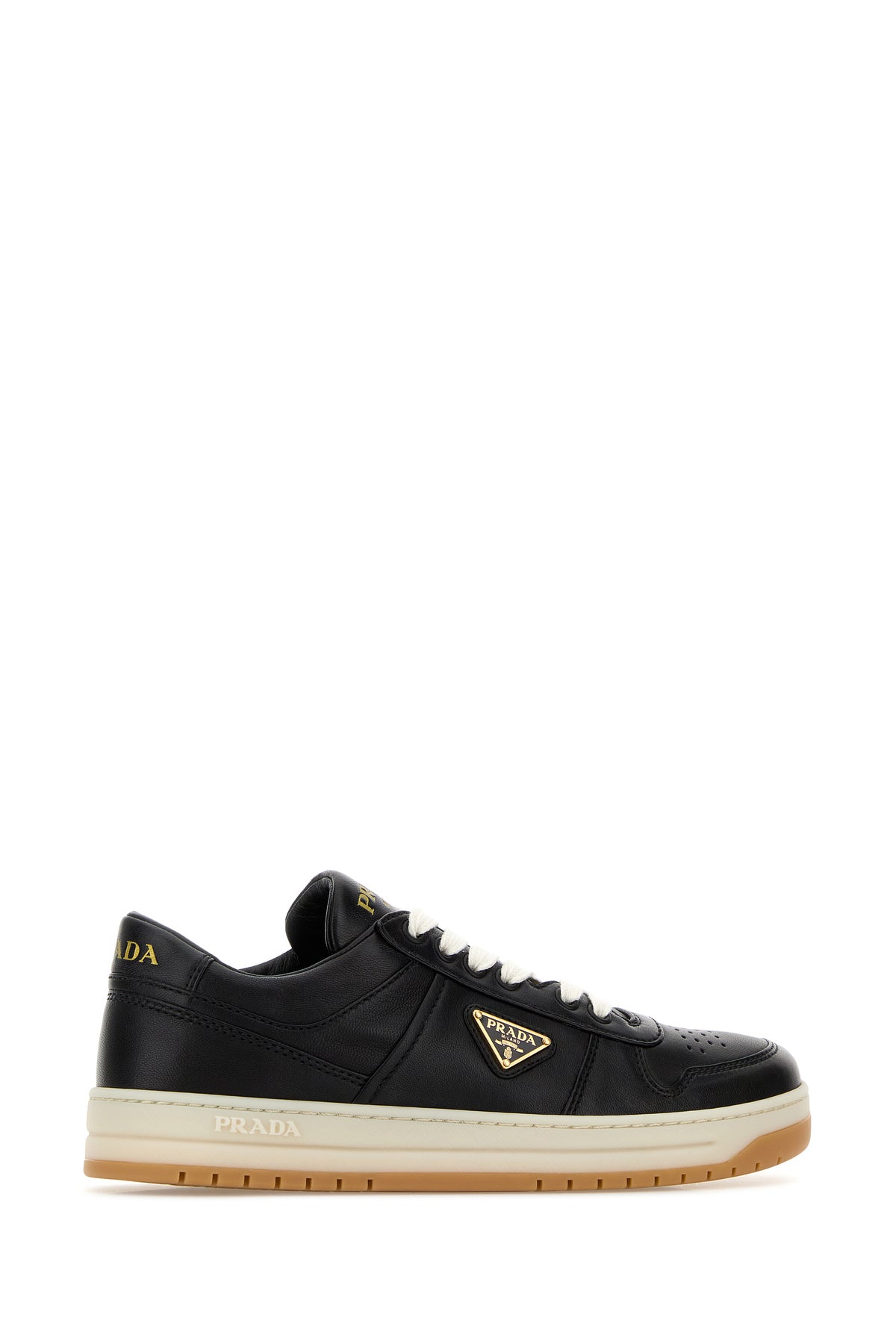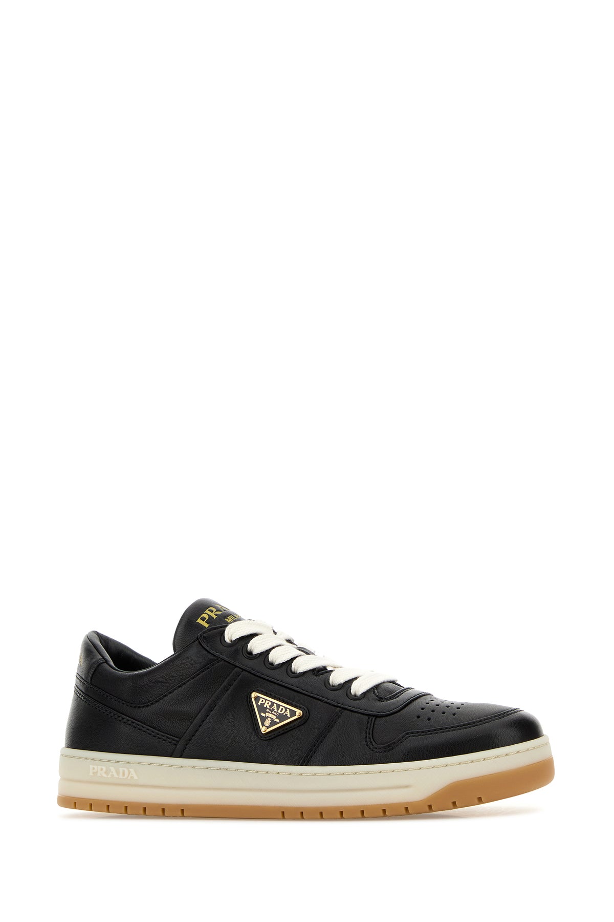 Sneakers realizzate in nappa liscia caratterizzate da logo in rilievo sul lato e da logo stampato a contrasto sul tallone arricchite da iconico triangolo logato in metallo sul lato.