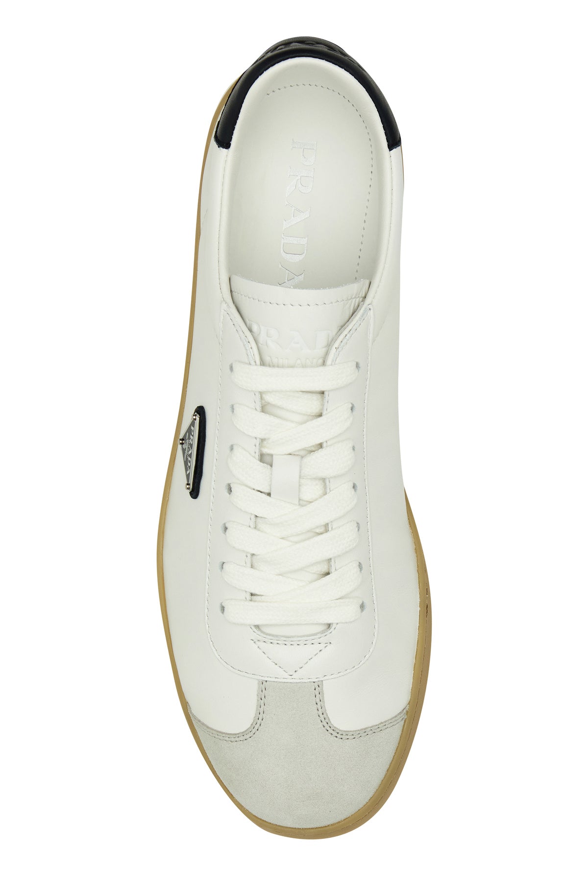 Sneakers realizzate in nappa caratterizzate da logo impresso sul tallone a contrasto arricchite da iconico triangolo metallico logato sul lato.