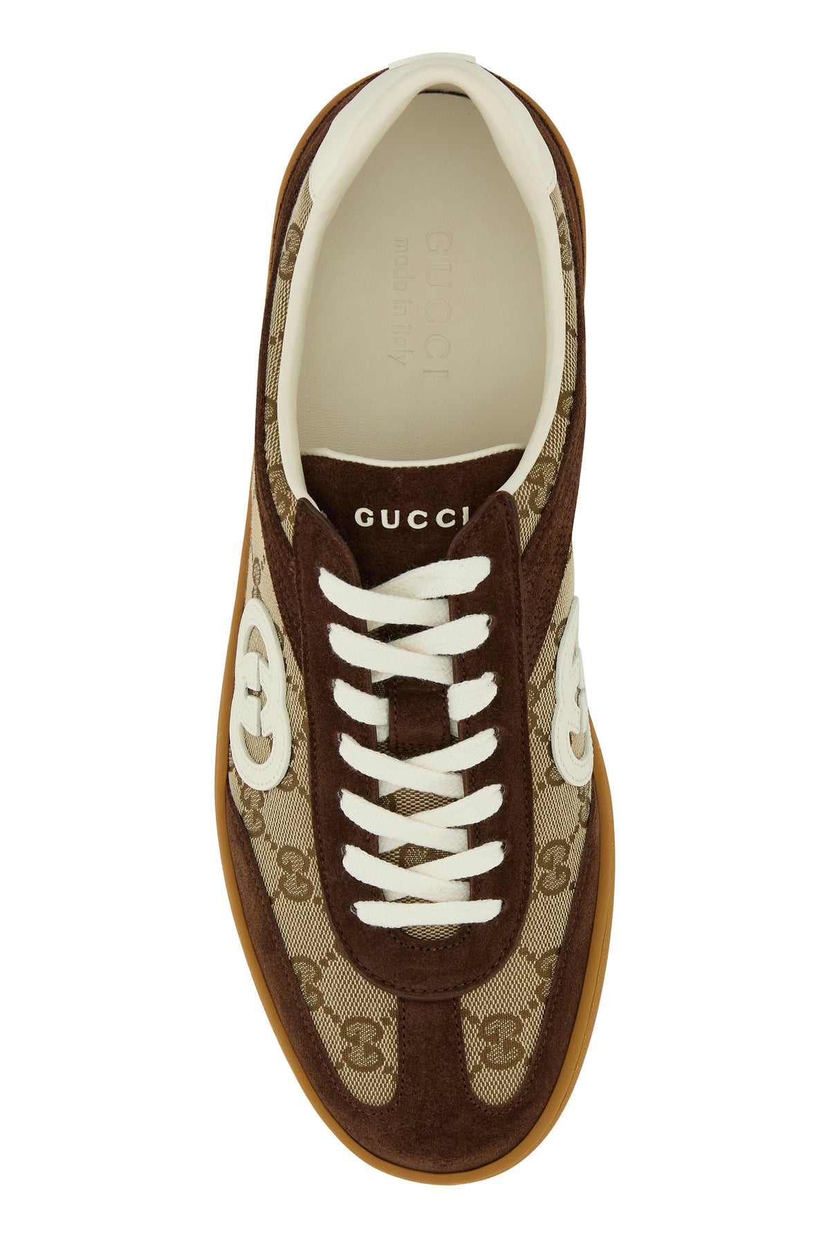 Sneakers realizzate in tessuto GG e pelle scamosciata arricchite da applicazione Incrocio G in pelle sui lati e sul tallone.