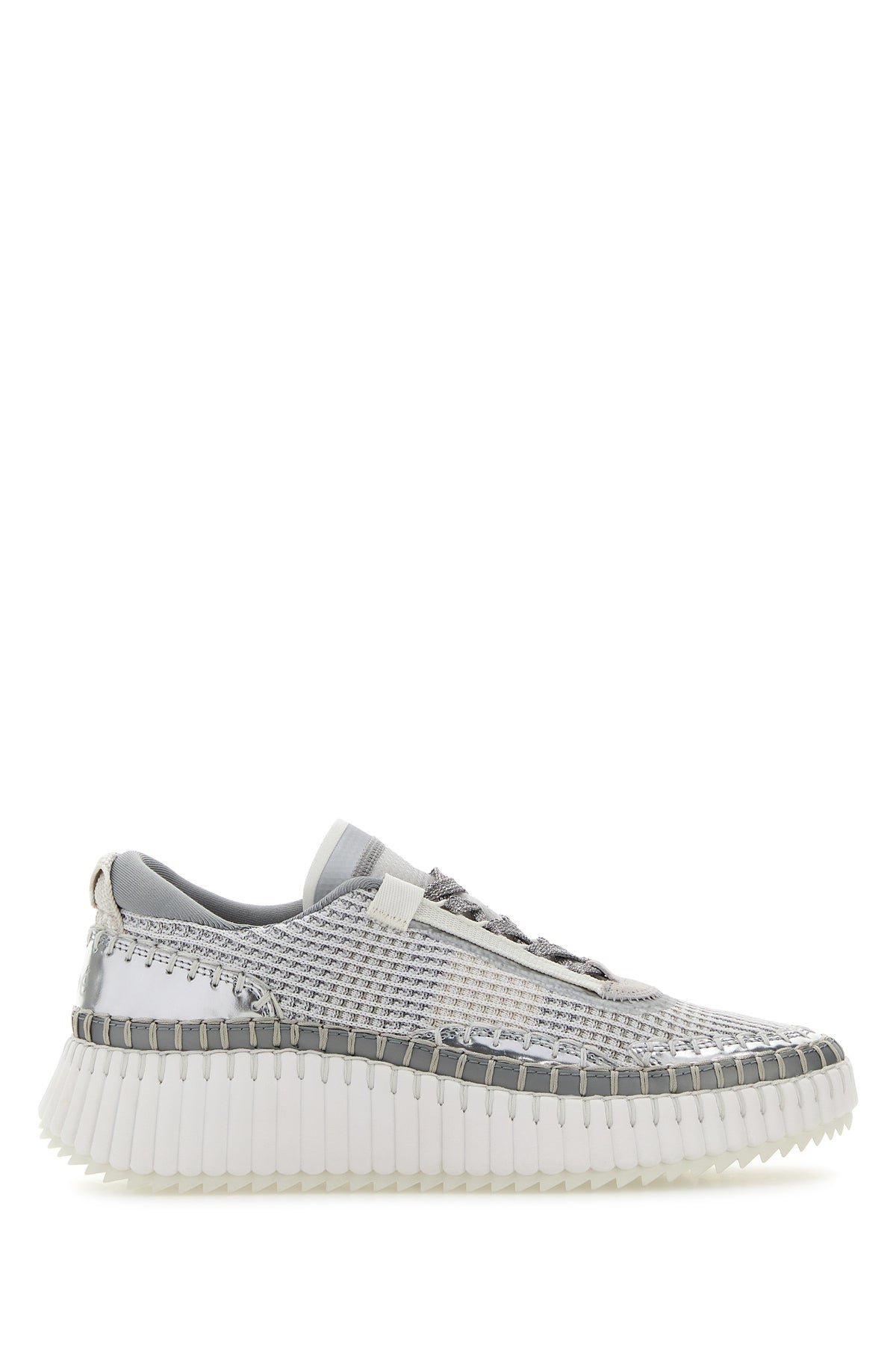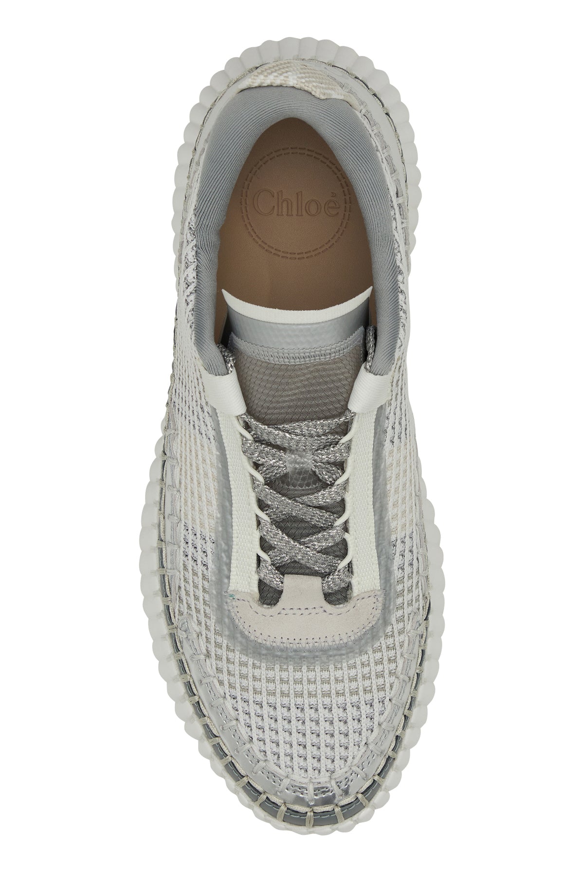 Sneakers realizzate in tessuto riciclato con inserti in pelle laminata caratterizzate da logo impresso sul retro.