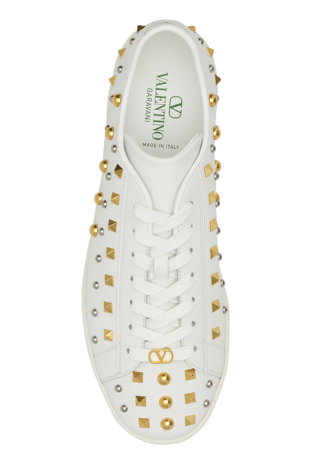 Sneakers realizzate in pelle caratterizzate da stampa VLogo Signature sul tallone arricchite da borchie metalliche su tutta la superficie.