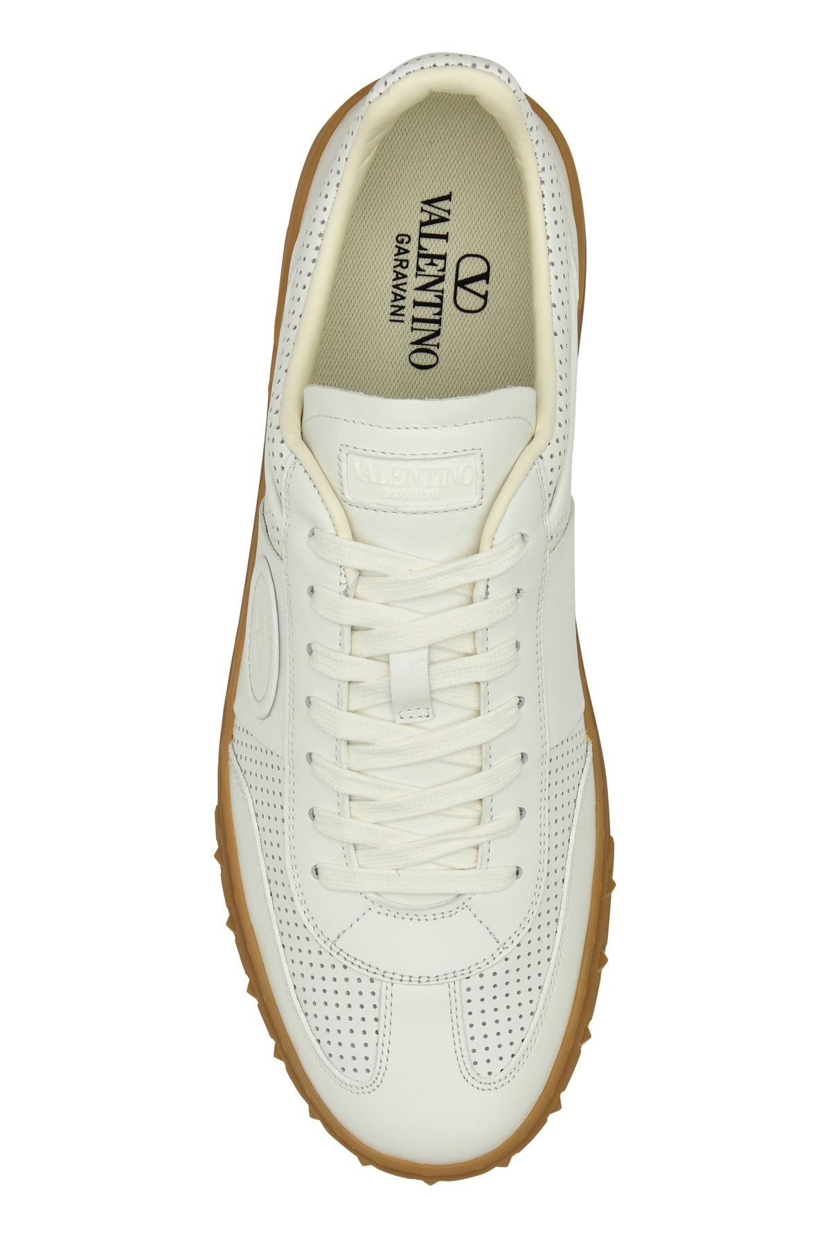 Sneakers realizzate in nappa di vitello perforata caratterizzate da logo in rilevo sulla suola a contrasto arricchite da applicazione VLogo Signature tonale sul lato.