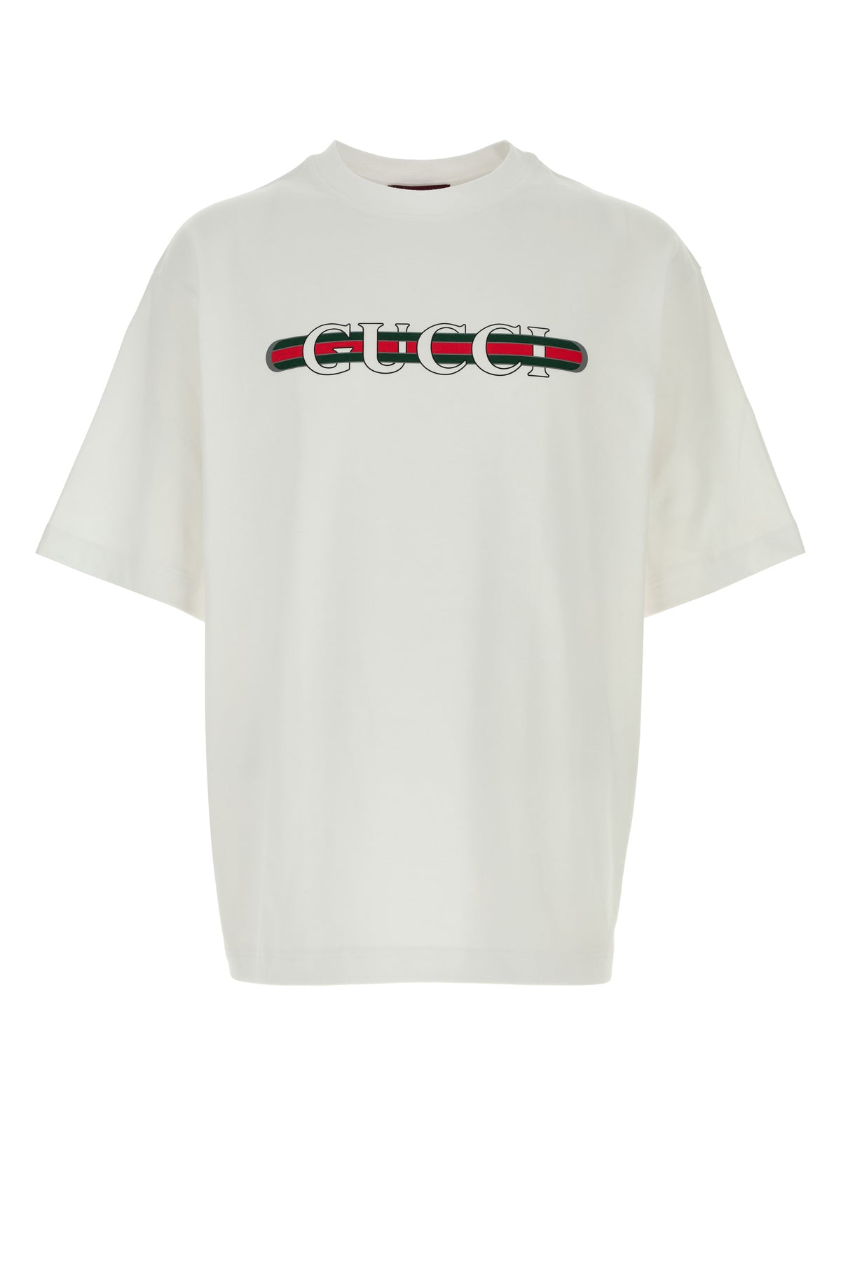 T-shirt realizzata in puro cotone caratterizzata da stampa Gucci Web a contrasto sul petto.