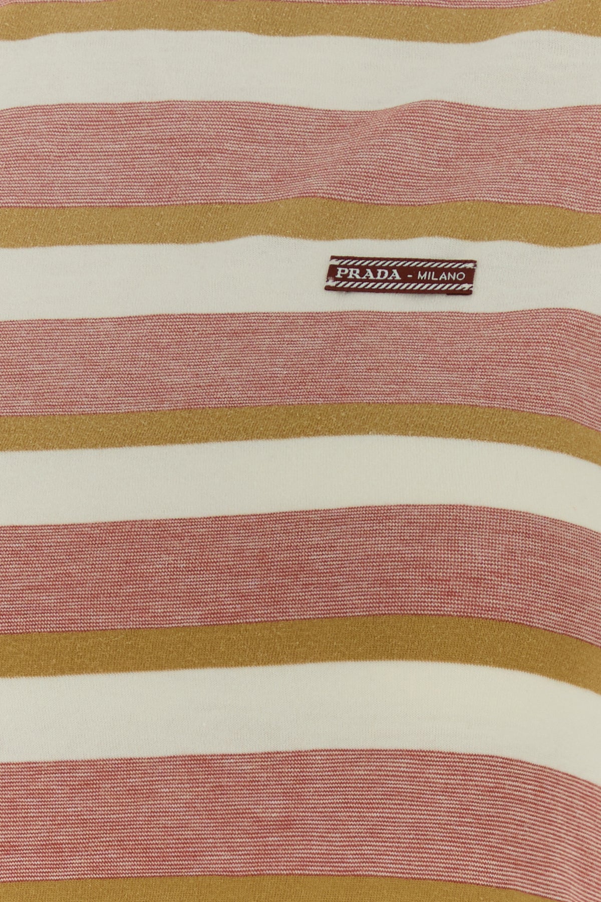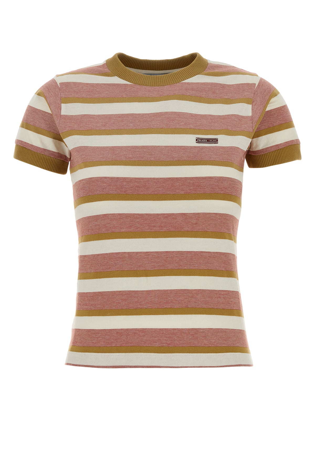 T-shirt realizzata in puro cotone caratterizzata da ricamo a righe su tutta la superficie arricchita da etichetta logata sul petto.