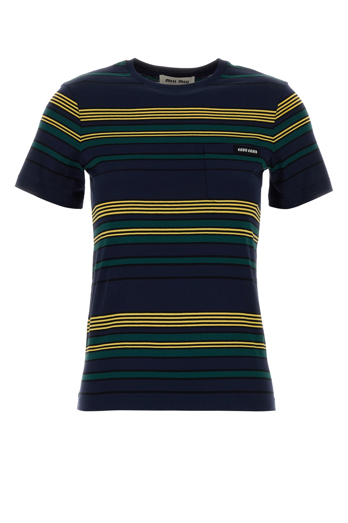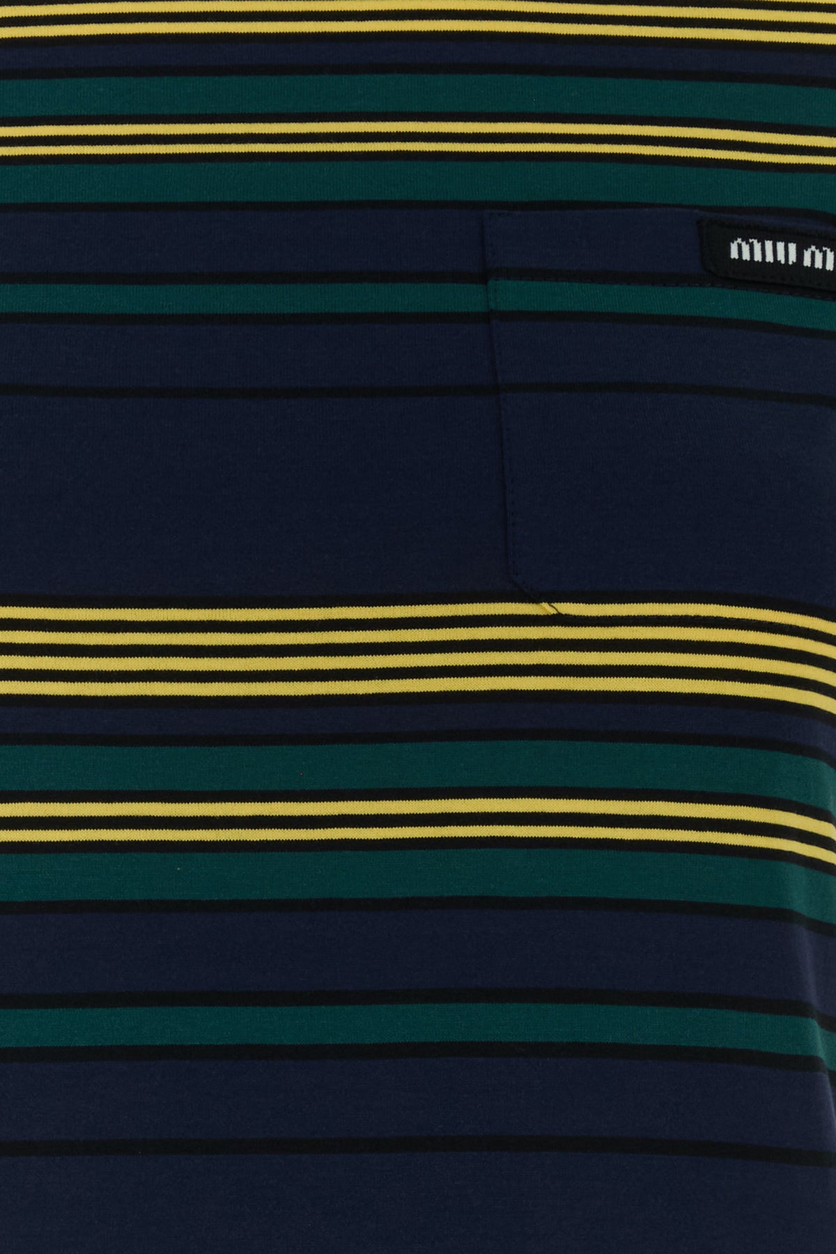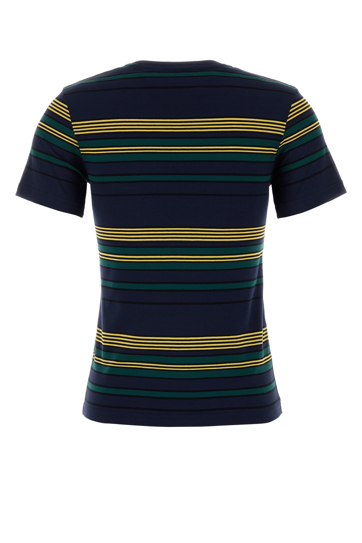 T-shirt realizzata in puro cotone caratterizzata da ricamo a righe su tutta la superficie arricchita da etichetta logata sul petto.