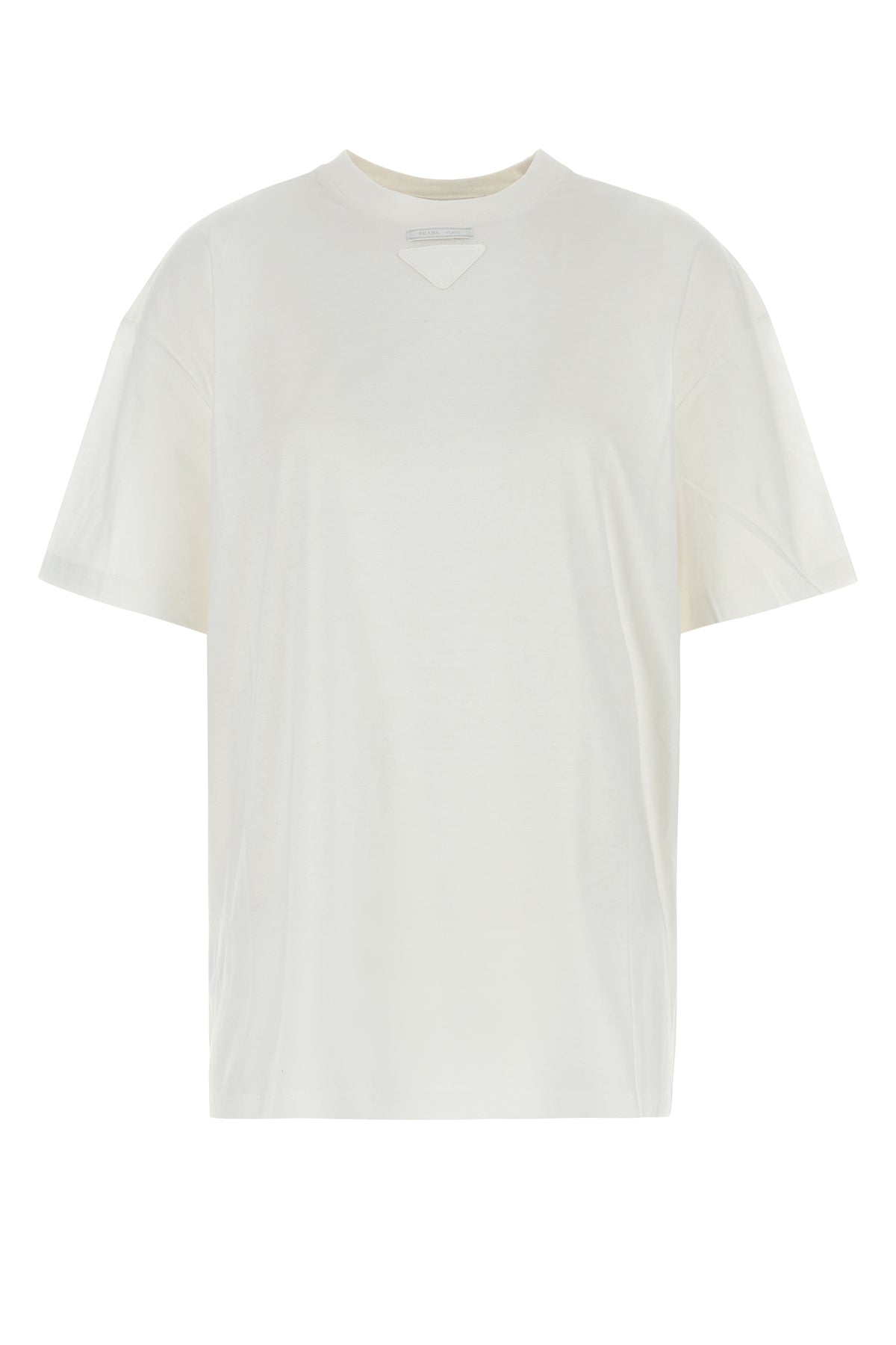 T-shirt oversize realizzata in puro cotone arricchita da iconico triangolo in tessuto tonale e etichetta logata sulla parte frontale.